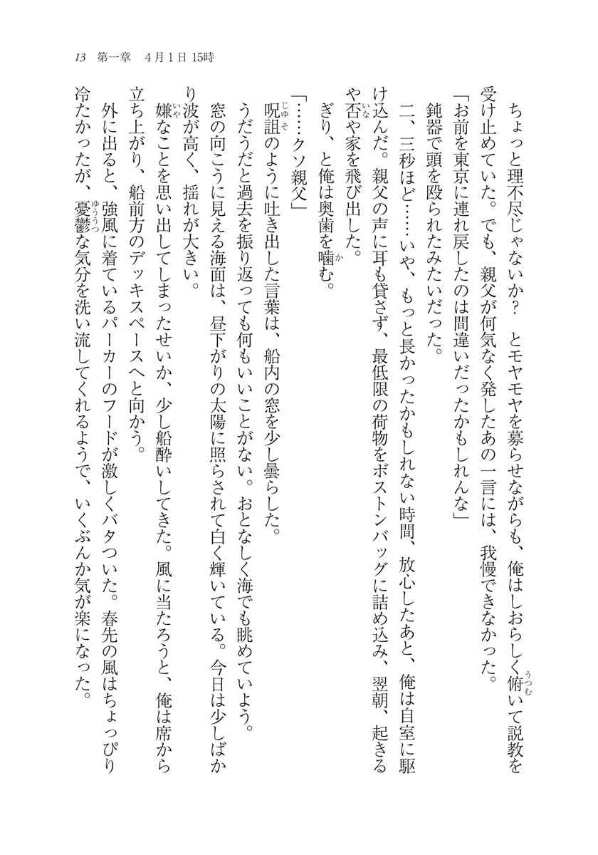 午後6時を告げるチャイム『グリーンスリーブス』が島内に鳴り渡るなか、突然、カナエの意識は4日後に飛んだ。混乱の最中、カナエは憧れの存在だったあかりの兄、保科彰人が亡くなったことを知らされる。