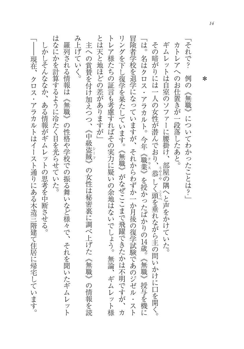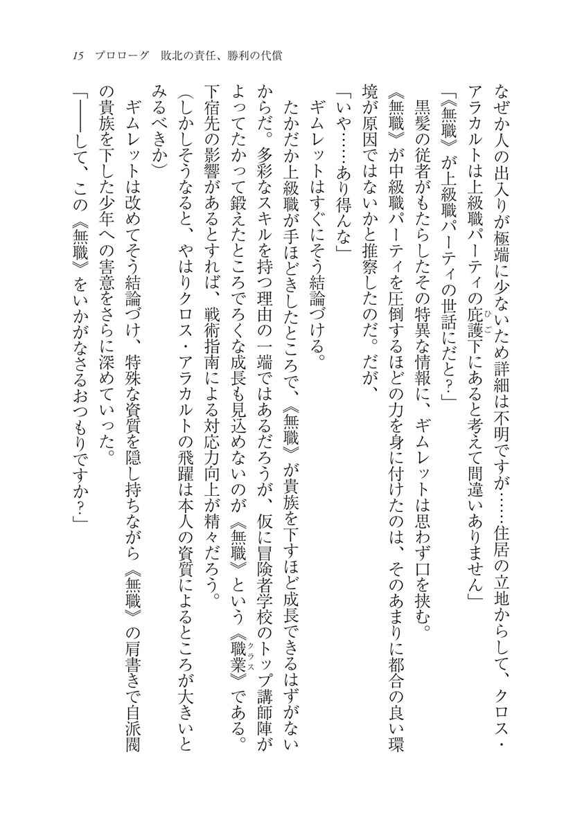 大いなる試練。遙かなる成長――。 貴族の子女カトレアを退けた《無職》のクロスの噂は、バスクルビアに轟き、いまや彼は注目の的となっていた。