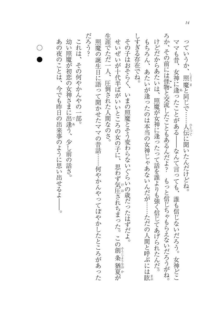 女神たちと戦っていくにはヤバさが足りないと断言された照魔。そして、人間の男の子と付き合うには堅物すぎて遊び心がないと