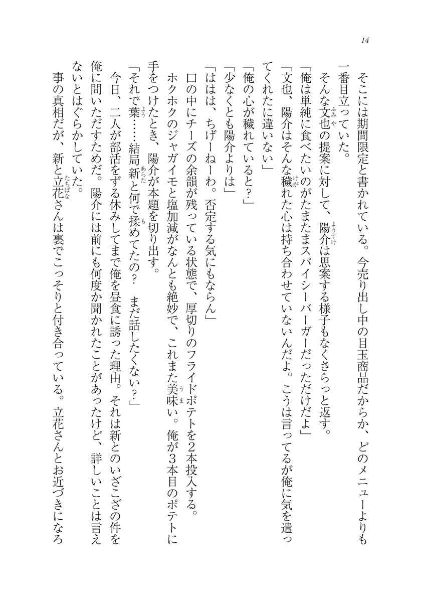 夏は少女を変える―― 新との騒動が解決し、夏休みに突入する。恋愛面でなかなか行動に移せない葉に対し、友人の文也は「アルバイトでもしたらどうだ?」と助言をする。あいりとデートをするにも、身だしなみを整えるにもお金が必要になるからだ。近所のファミレスで働くことになった葉は、そこで可愛いファミレスの制服を着たあいりと遭遇する。どうやら、“たまたま”あいりも同じ店でバイトを始めたようだ。二人の距離はどんどん縮まっていき、落ち込んだ姿を見せる千鶴。その様子を見て心配した美紀が、“あること”を千鶴に伝えるのだが――。ヒロイン達が暗躍する、新感覚ラブコメ第2弾!