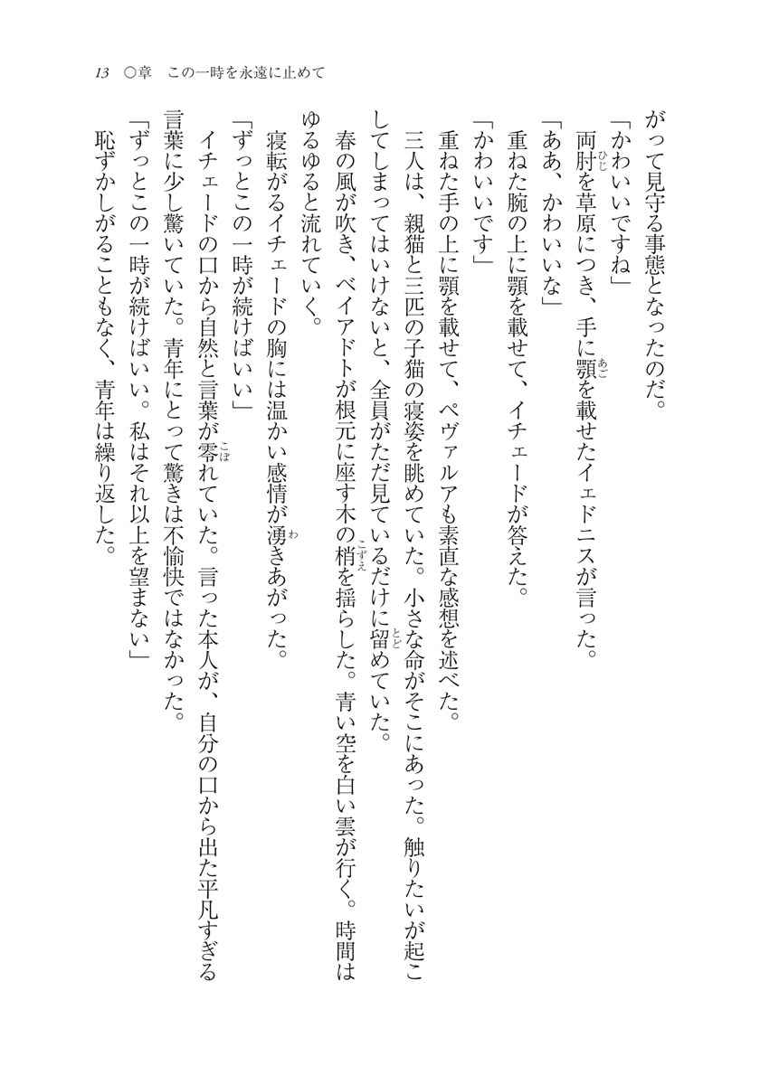 アブソリエル帝国編、ここに完結! ガユスとギギナは皇宮へと侵入。皇帝イチェードを護る親衛隊との激戦。暗躍していた〈大禍つ式〉の侯爵と大伯爵との死闘。死孔雀によるもっとも恐ろしい咒式が発動し、さまよえる迷宮で人々は絶命していく。 大陸各地でも運命の一戦が開始され、翼将筆頭代理となったバロメロオは、北方戦線の崩壊を防ぐ撤退戦を続ける。最強にして覚者にして救世主、ミルメオンが出陣。ついに姿を現す、ガユスたちの間に潜む裏切り者の正体。それぞれの癒しえぬ傷跡はどこへと向かい、赦されるのか。後アブソリエル帝国編、ここに完結。