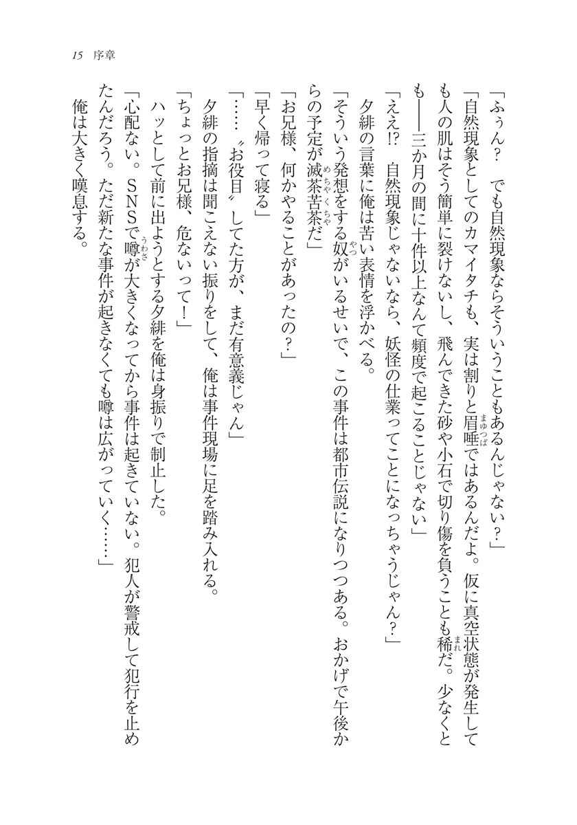 ねっ……お兄様、今夜も……いい? “人外の仕業”と噂される事件の謎を解くことで、怪異を封じる力を持つ混河葉介。葉介の助手を務めるのは、とある秘密を抱える妹・夕緋。