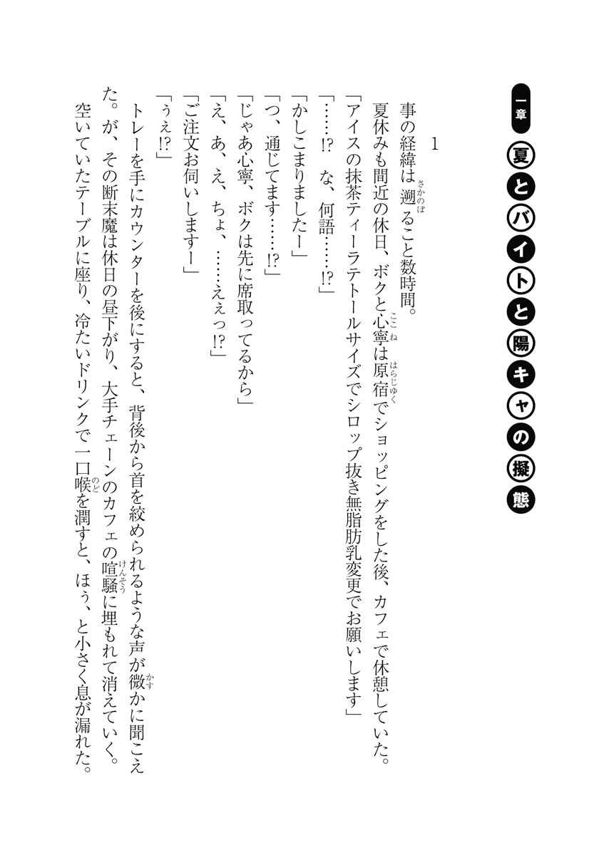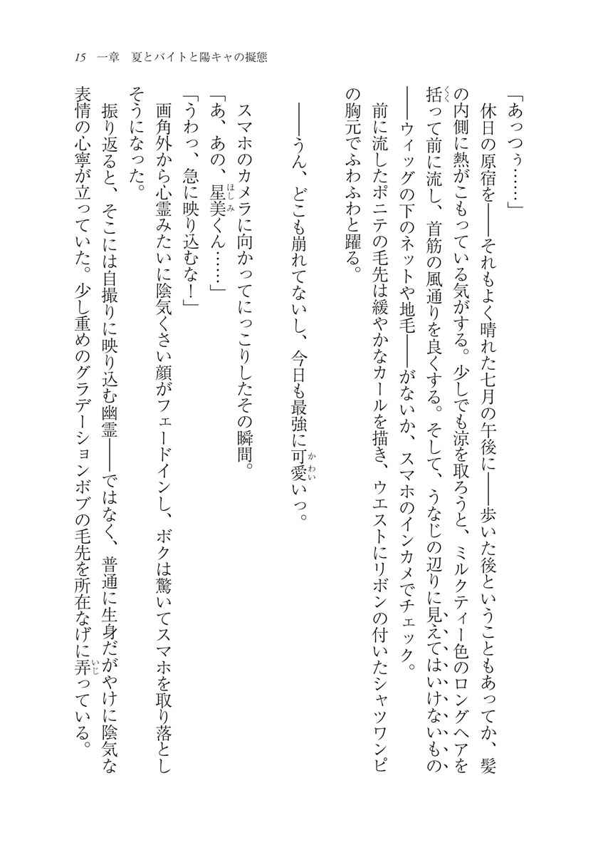 陽キャな彼と彼女の、秘めた想い。 夏休み直前、ショッピングを楽しむジル(星美)と心寧は、夢中になりすぎて通り縋りの女性のバッグを汚してしまう。その値段、なんと六十万円! せめてのお詫びにと、女性の経営するカフェでバイトをすることに。すると、そこにはキッチンで働く折戸の姿が!? ジルは、自分の正体がクラスメイトの星美であることがバレないよう、バイトをこなさなければならない。更には、伊武から折戸の好きな人を探るように頼まれ、彼女をプロデュースすることに。これは陽キャな彼と彼女と、それをつなぐ女装男子・陰キャ女子のひと夏の物語。