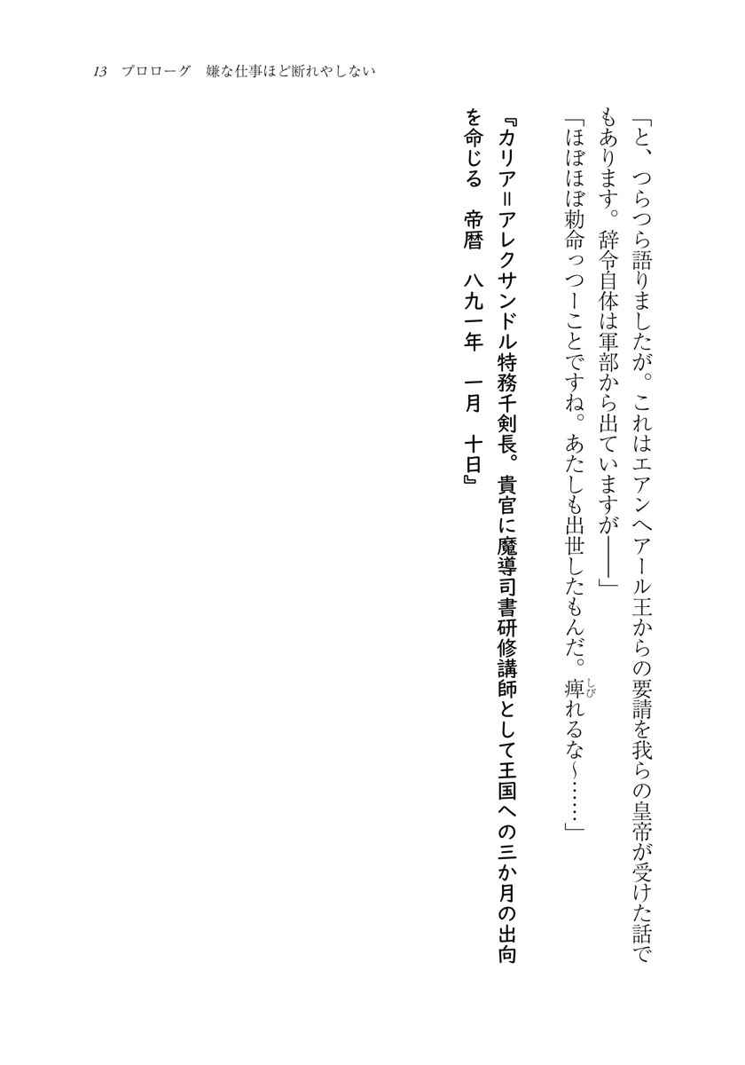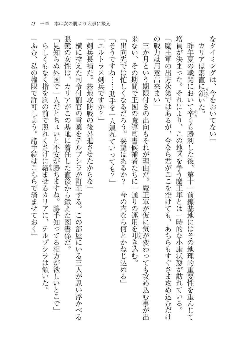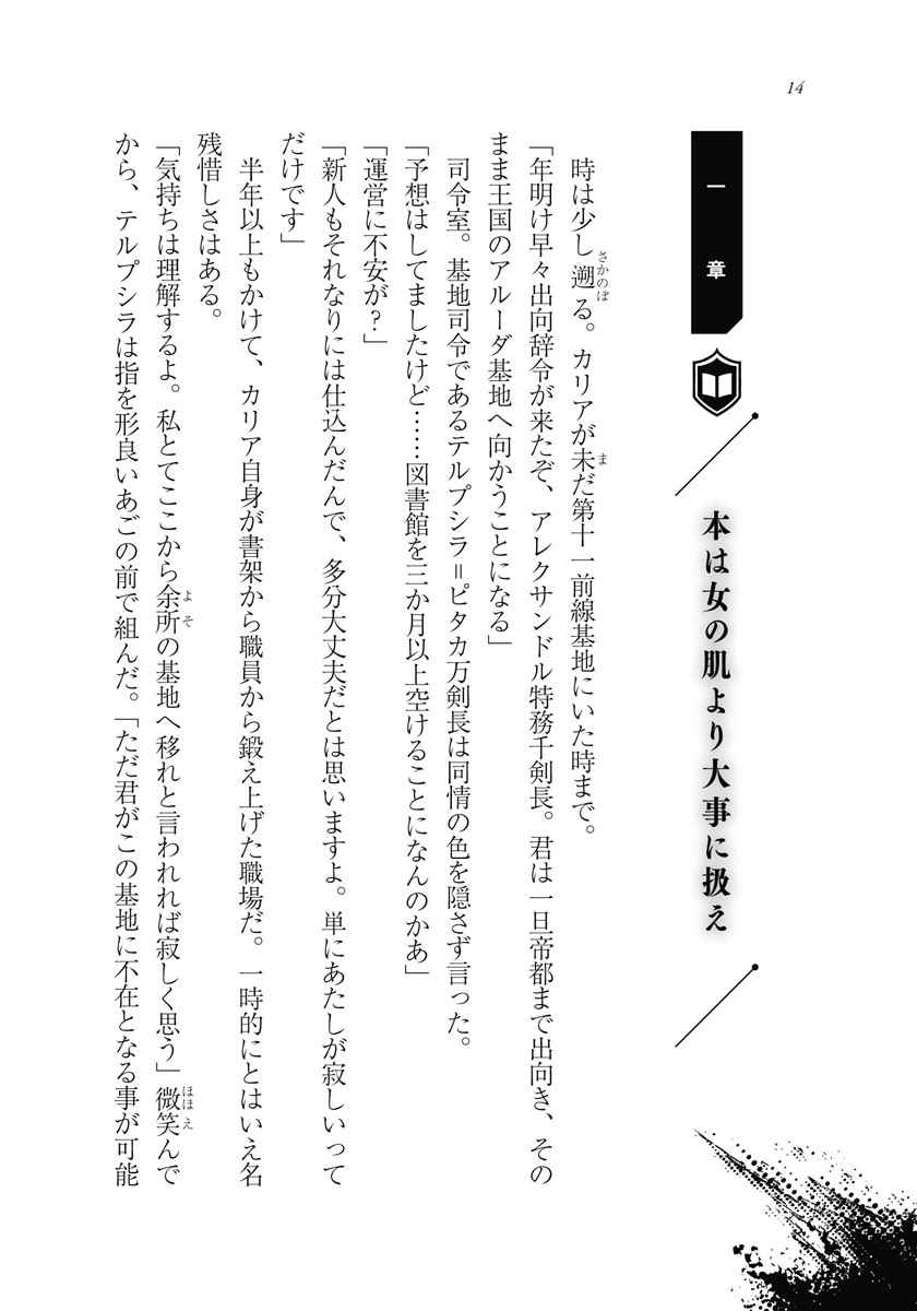 相変わらず攻撃の決め手に欠ける連合軍。王国は今や抑止力としての効果に疑いない『魔導書』の力をさらに掘り起こすべく、帝国から魔導司書を招聘することとなった。そして、そこに呼ばれるのは当然――