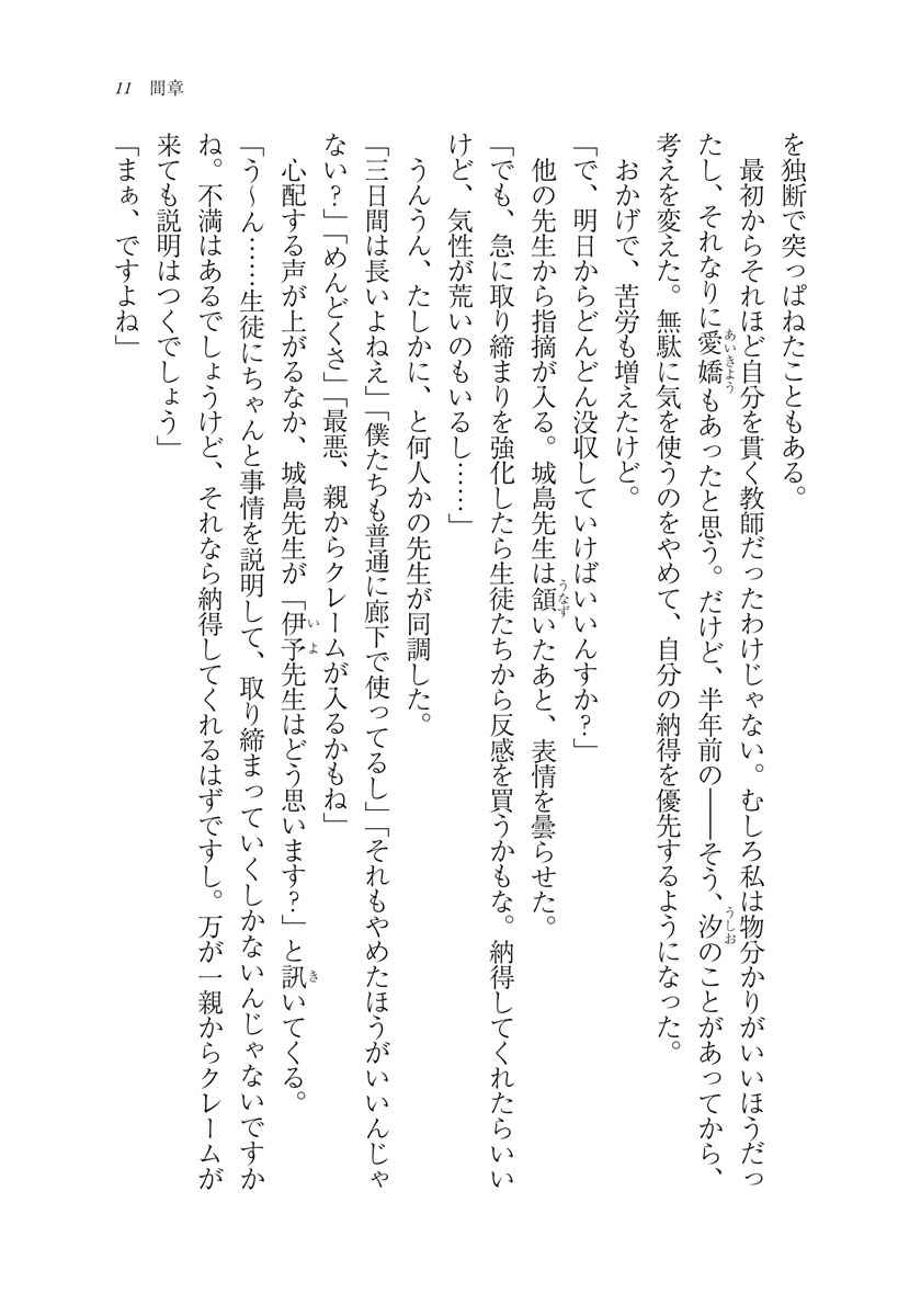 だがそこに、咲馬が最も苦手で忌避する人間が介入してくる。巧みな話術で周囲を翻弄する詐欺師のような男、世良。彼は咲馬の価値観を揺るがすような事態に巻き込んでいく。