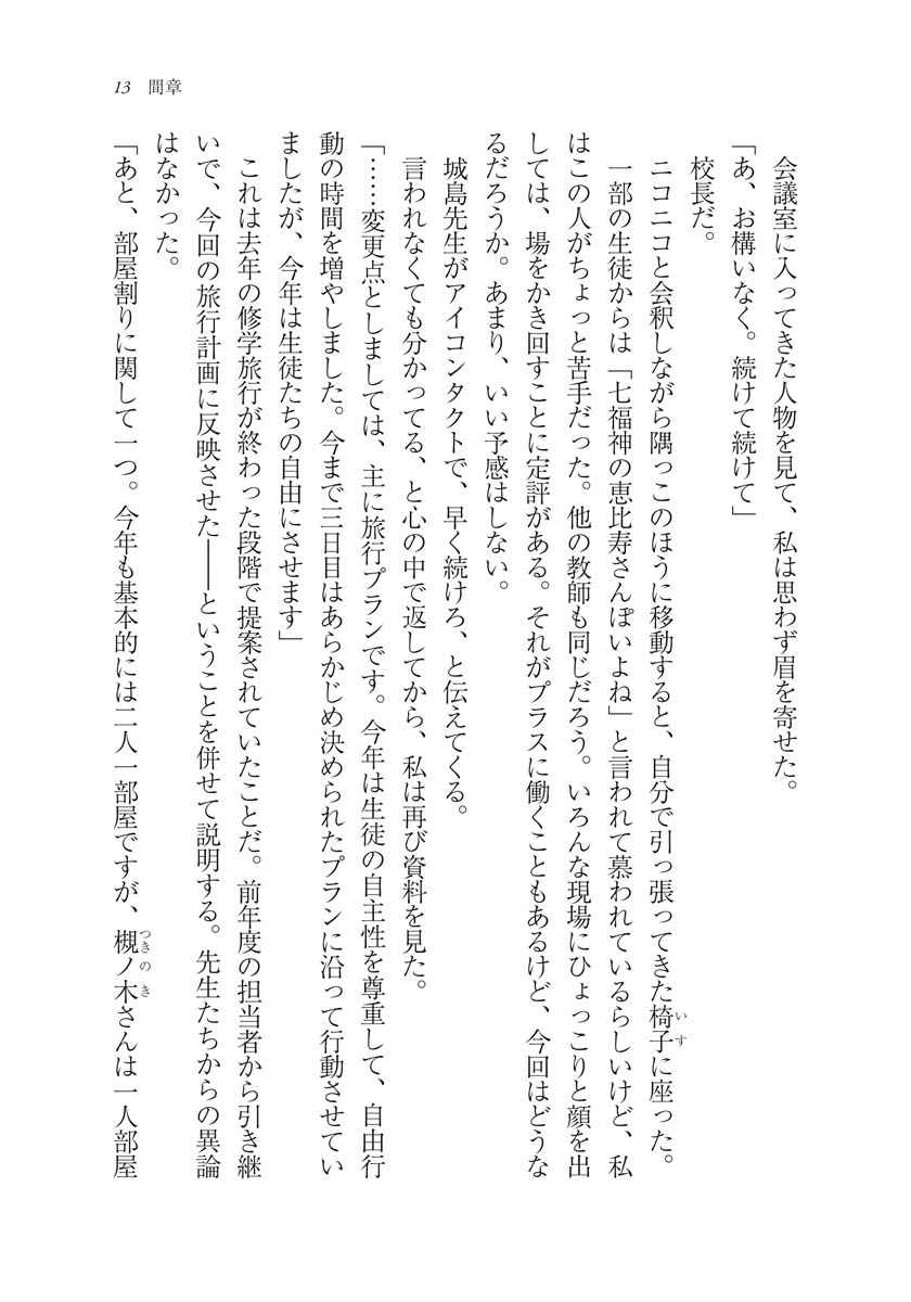 世良の思惑に振り回されながら、椿岡高校二年生の生徒たちは、修学旅行を迎えた。