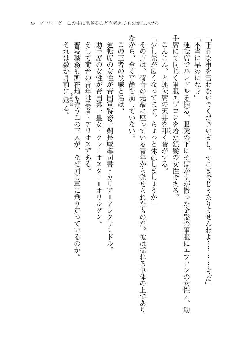 移動図書館車アーキエーアにて各前線へと本を届ける「司書」の道連れになるのは、彼女のボスであり連合国首脳の信任を手にした「皇女」と、人類の最強存在たる「勇者」。危険すぎる三人組は戦場を越えて、戦争を終わらせるという一大秘匿作戦へと向かう――。