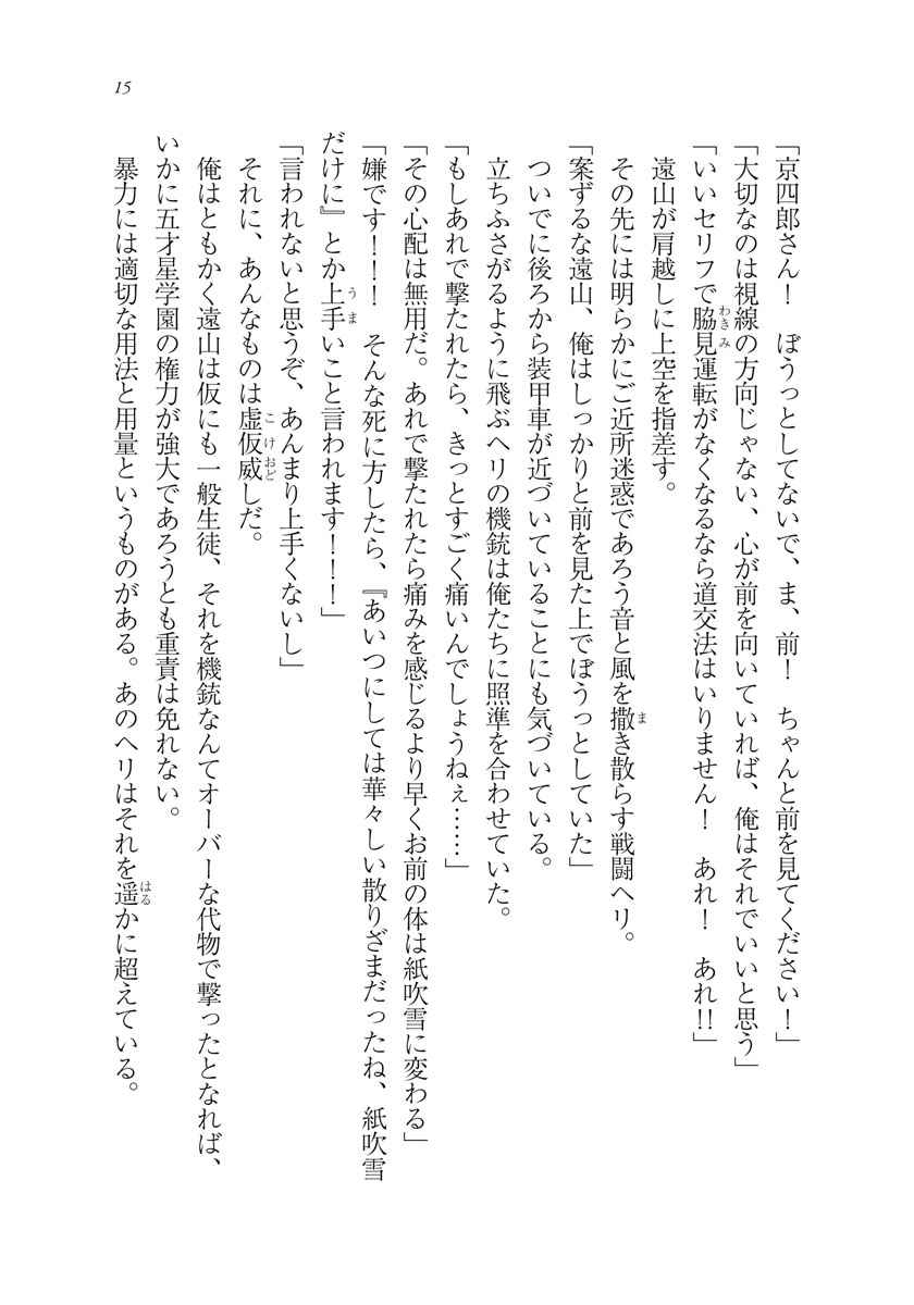 そもそも、問答無用で学園最大規模のイベントをぶち壊した怪獣系美少女の有馬風香とか、誰でも裏切るわりに実は繊細でかわいい雪代宮古とか、この学校にいる間は誰も殺すなって約束させたキュートな霧島紗衣とかにも、ちょっぴり責任はあると思うんですよね。