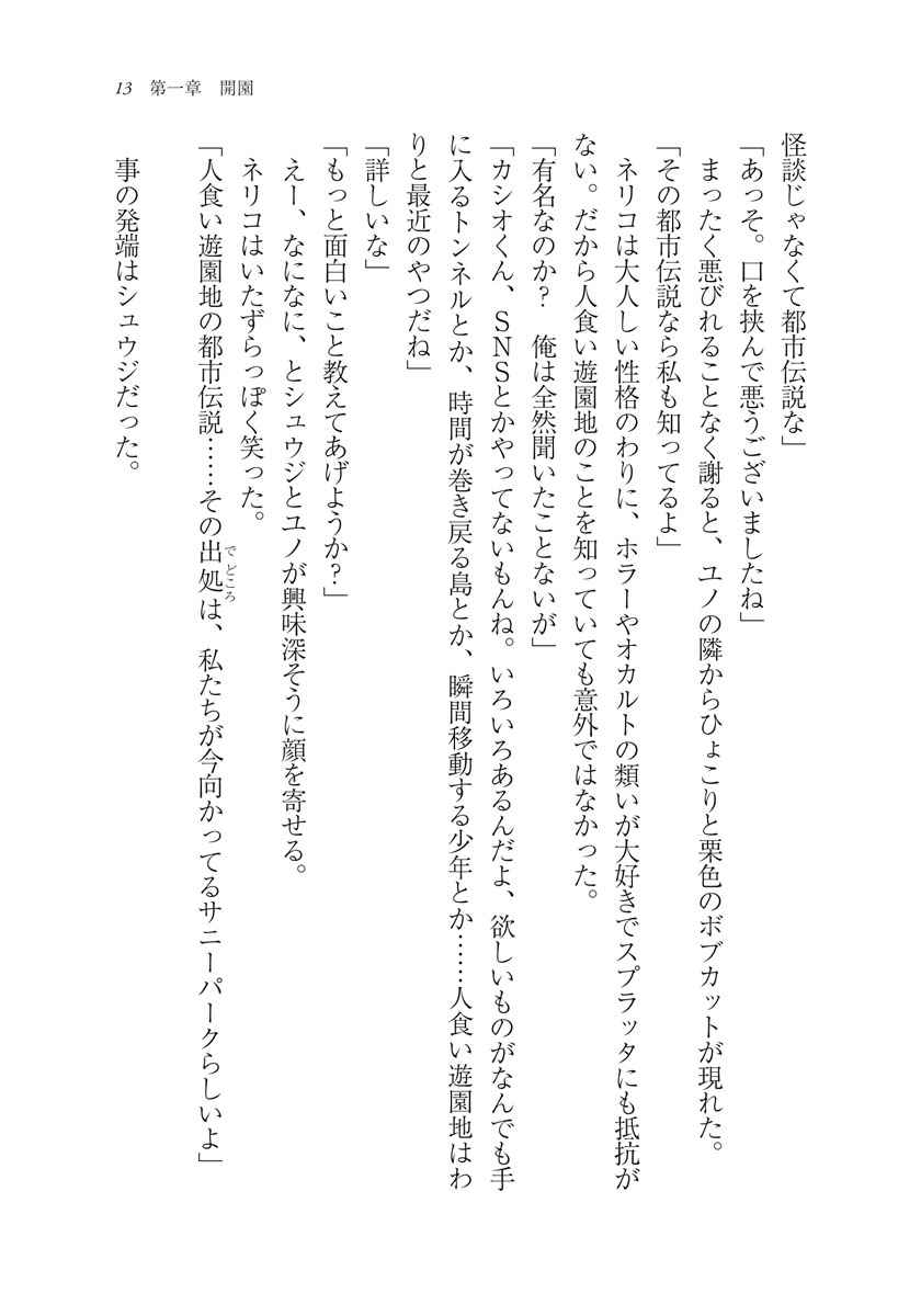 彼女は小寺あせびと名乗り、カシオがサニーパークから出られず同じ一日をループしているのだと告げる。そして、このループ現象から抜け出す唯一の方法は、誰かを殺すことだと……。