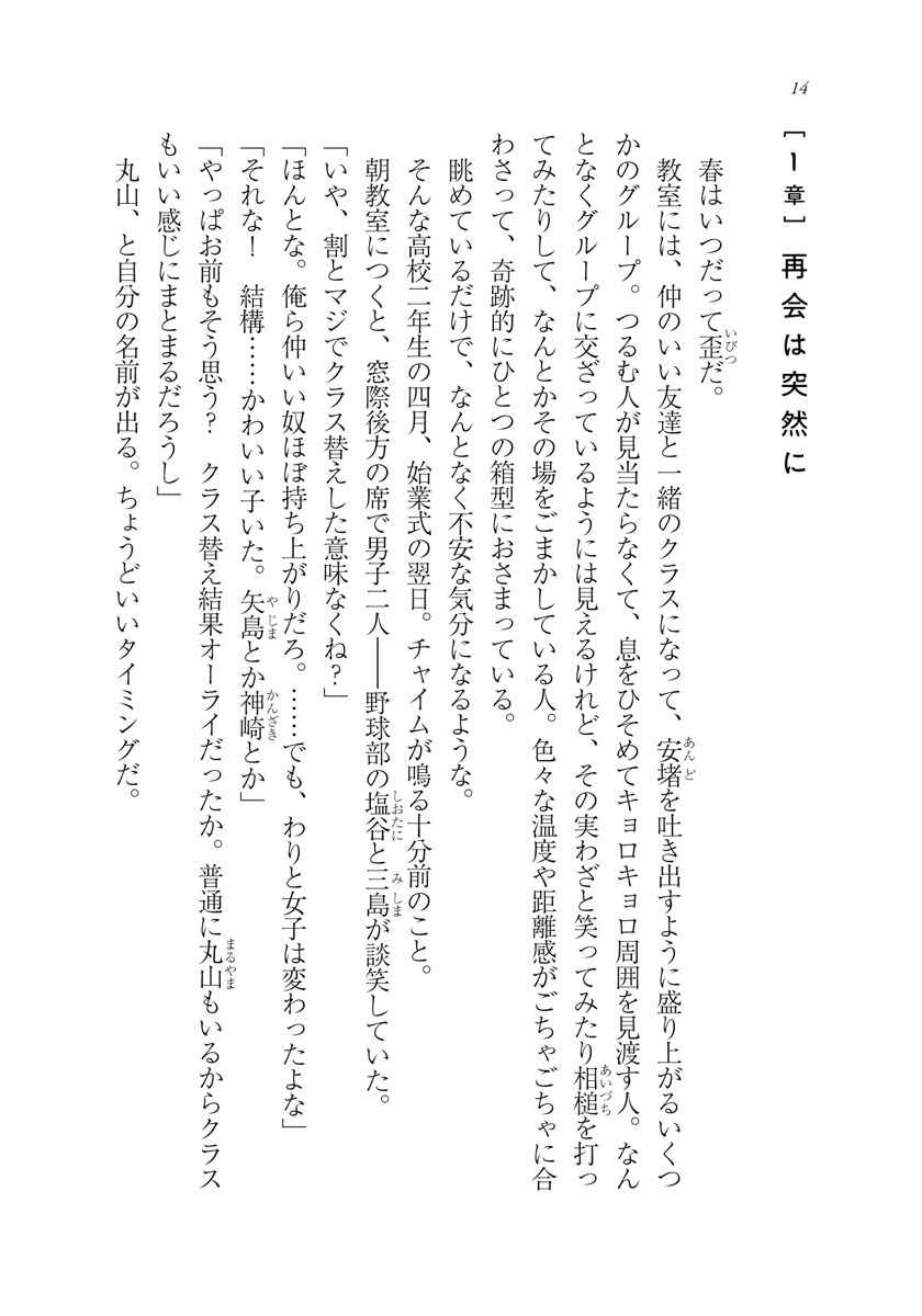 幼い頃にお別れした名前も知らない初恋の少女が、高校生になった僕の目の前に現れた。彼女――鈴代憬と再会し、会えなかった過去を、新しい現在で埋めていく二人。