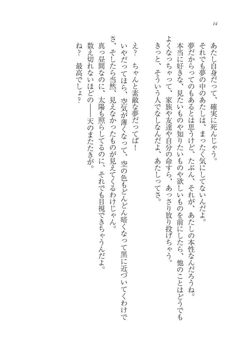 それでも世界は、依然として崖っぷちにあった。百刈燈をはじめとする三名の依代が再び肉体を乗っ取られるまで、およそ五十日しか残されていないうえ、白鬼を宿した朋之浦結を奪取すべく、《一二〇》が地上侵攻してくる可能性すら高いのだ。状況を打破する唯一の道は、白鬼の所在を秘匿したうえで、時間切れまでに《一二〇》との和睦を果たすことのみ。