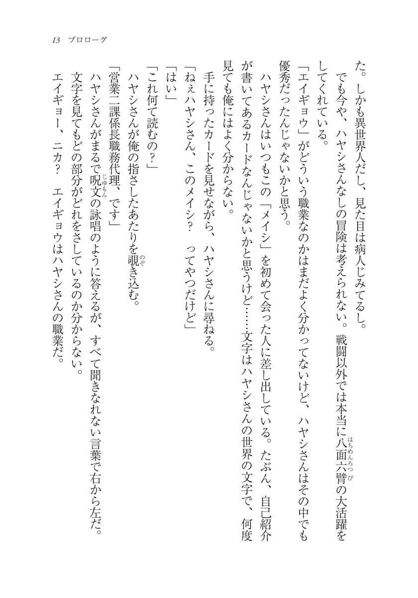 営業のハヤシ、レースに出場する!? 無事魔族を追い払うことに成功した、アレクたち勇者一行。けれど、魔王は日に日に力を増大させているようだ。王様からの情報で、魔王討伐のためには伝説の装備が必要だと分かったのだが、なぜかその伝説の装備がレースの優勝賞品!? 賞品を手に入れるため、営業車のハンドルを握るのはゴールド免許持ちのハヤシ。はたしてハヤシは、強者達を抜き去り優勝することが出来るのか!? さらには、魔王四天王や新たな仲間、ハヤシを気に掛ける女性も現れて……。勇者一行+営業ハヤシの、異世界コメディー第二弾!