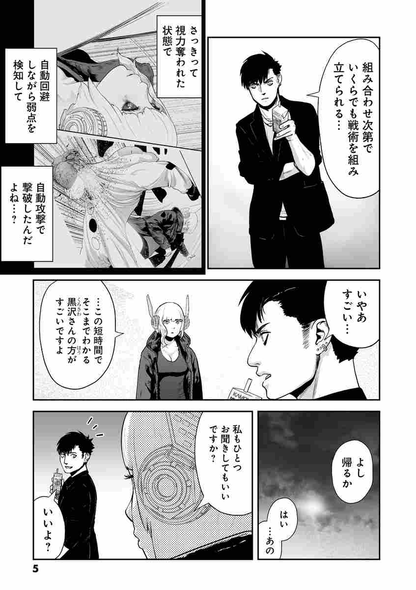 退魔師の殺り方、教えてやるよ 日本で起きた悪霊大量発生の原因を探るべくドイツよりやってきたS級退魔師『黒沢アキラ』。相棒となった美少女退魔師・千景と共に発端の地とみなされる場所に向かう二人は、そこで本来いるはずのない大量のクリーチャーが徘徊する様を目撃する。事前情報と違うその姿に戸惑いを隠せないアキラ達。リスクを避け撤退を決めたアキラと千景だったが、二人の前に禍々しい気配を漂わせる褐色の女と筋肉の鎧で覆われた大男のコンビが眼前に立ちふさがる。たわいない話をしながら、まるで散歩をしてるかのように悠々と近づいてくる女。アキラは一目見るなりこう呟いた。『アイツは、ヤバい』