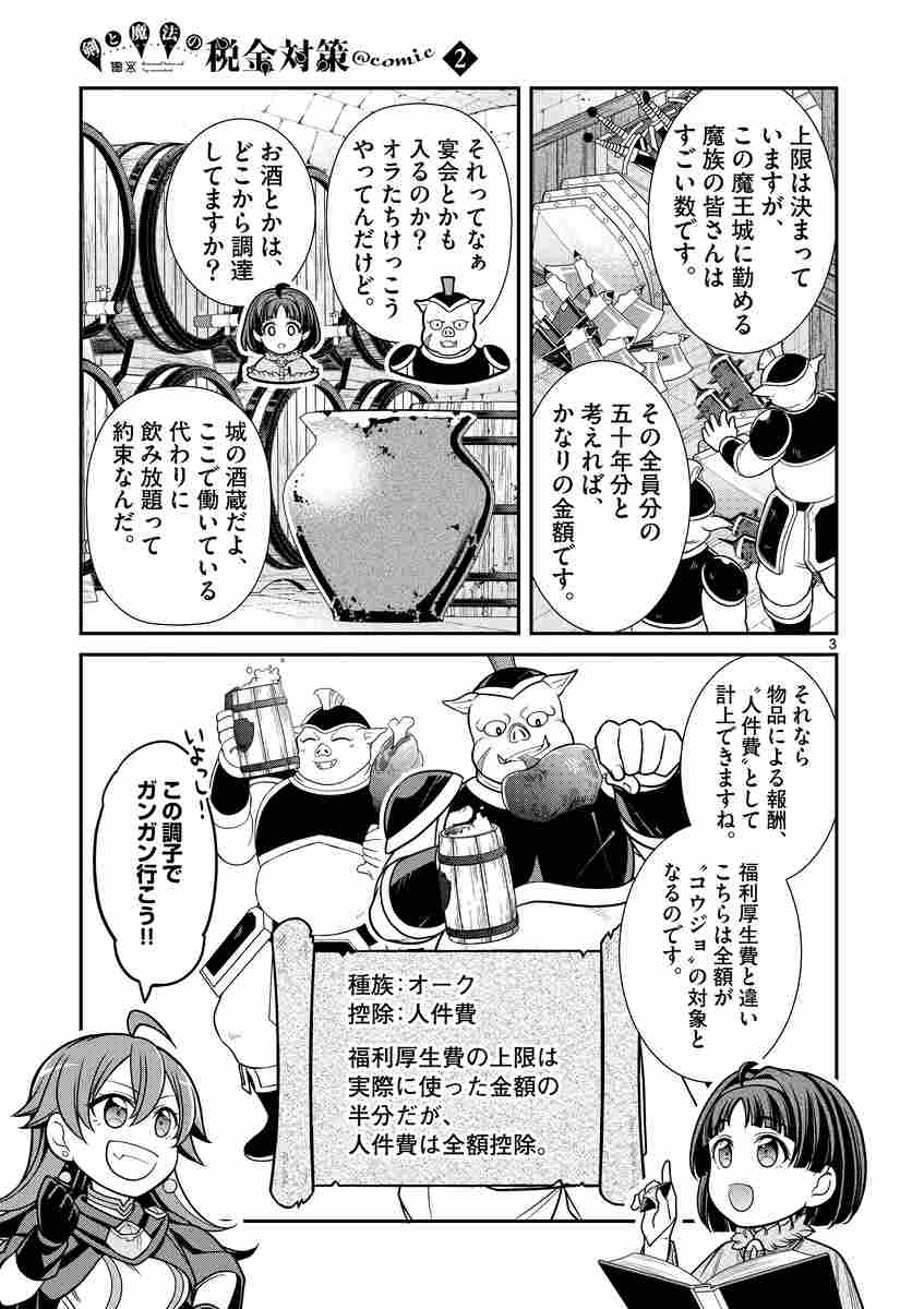 “ケイヒ”を計上すべく聞き取り調査開始! 1兆円という莫大な追徴課税を納めなければならなくなった勇者・メイと魔王・ブルー。二人は“ゼイリシ”の少女・クゥと共に、少しでも課税額を減らすべく“カクテイシンコク”を申告することに。そのため“ケイヒ”を計上する必要があり、メイとクゥはオークやアンデッド、ミミックなどの魔王軍に聞き取り調査を行う。彼らの話を聞いたクゥは様々な“ケイヒ”を洗い出していくが、メイには何か考えることがあるようで……