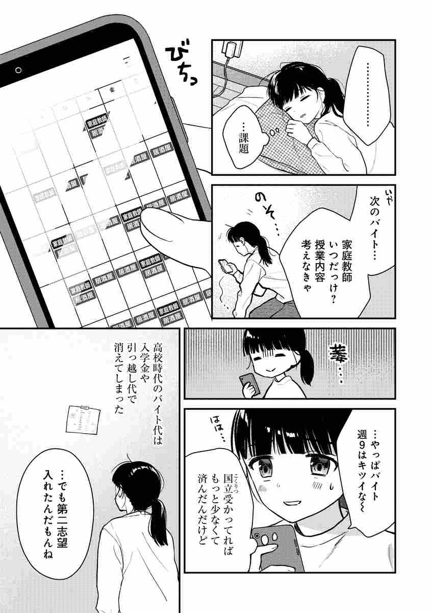 奨学金とバイト代で学費と生活費を賄う忙しい日々を送っていた。
