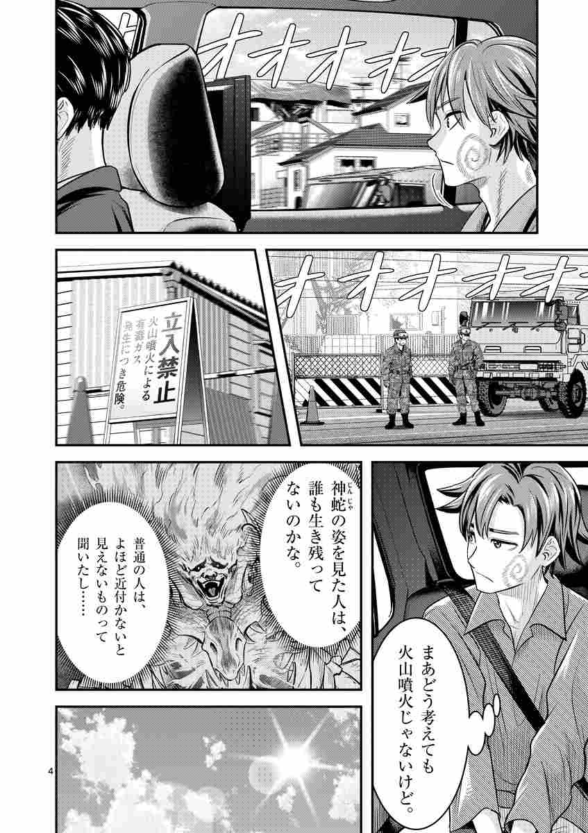 田口清隆シナリオによる怪獣マンガ第2巻 古来より日本にいたとされる怪獣=神蛇が出現。