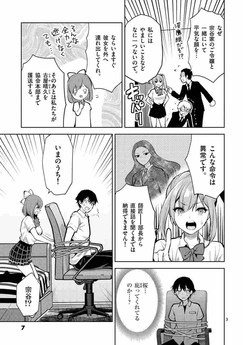 絶頂除霊などという呪われた能力をその身に宿す少年・古屋晴久。退魔師協会監査部に捕らえられ、ある疑惑について問い詰められた晴久だったが、美咲たちの機転により無罪放免を勝ち取る。そして、怪異との戦いを控え準備を進める中、晴久の妹分である桜に危機が迫り……!?
