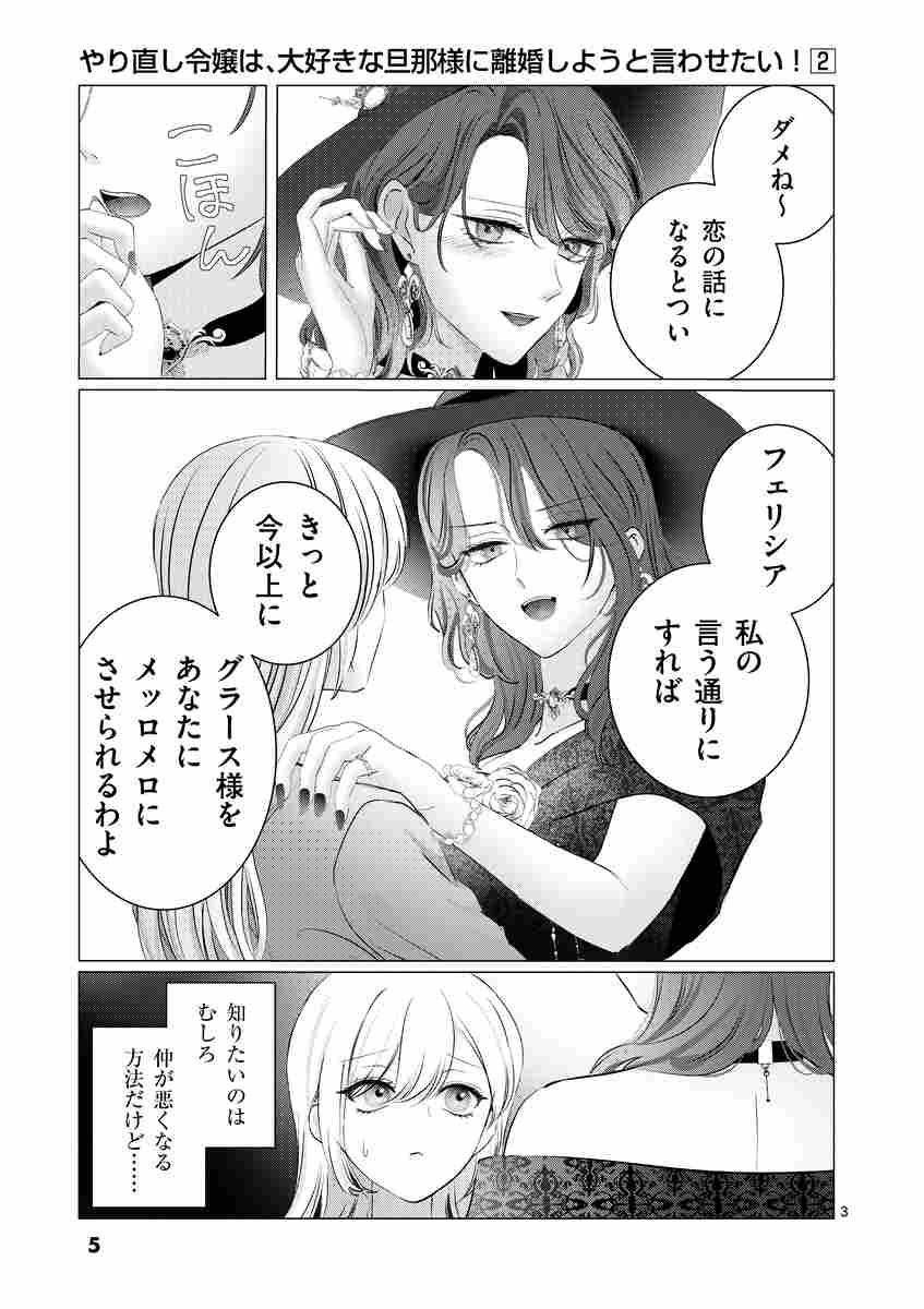 嫌われたいはずなのに、なぜか他の男に嫉妬したようなことを言われるし、アプローチをかけられるし…と、「やり直し」の前には見られなかったようなグラースのフェリシアへの本当の想いがわかって…!?