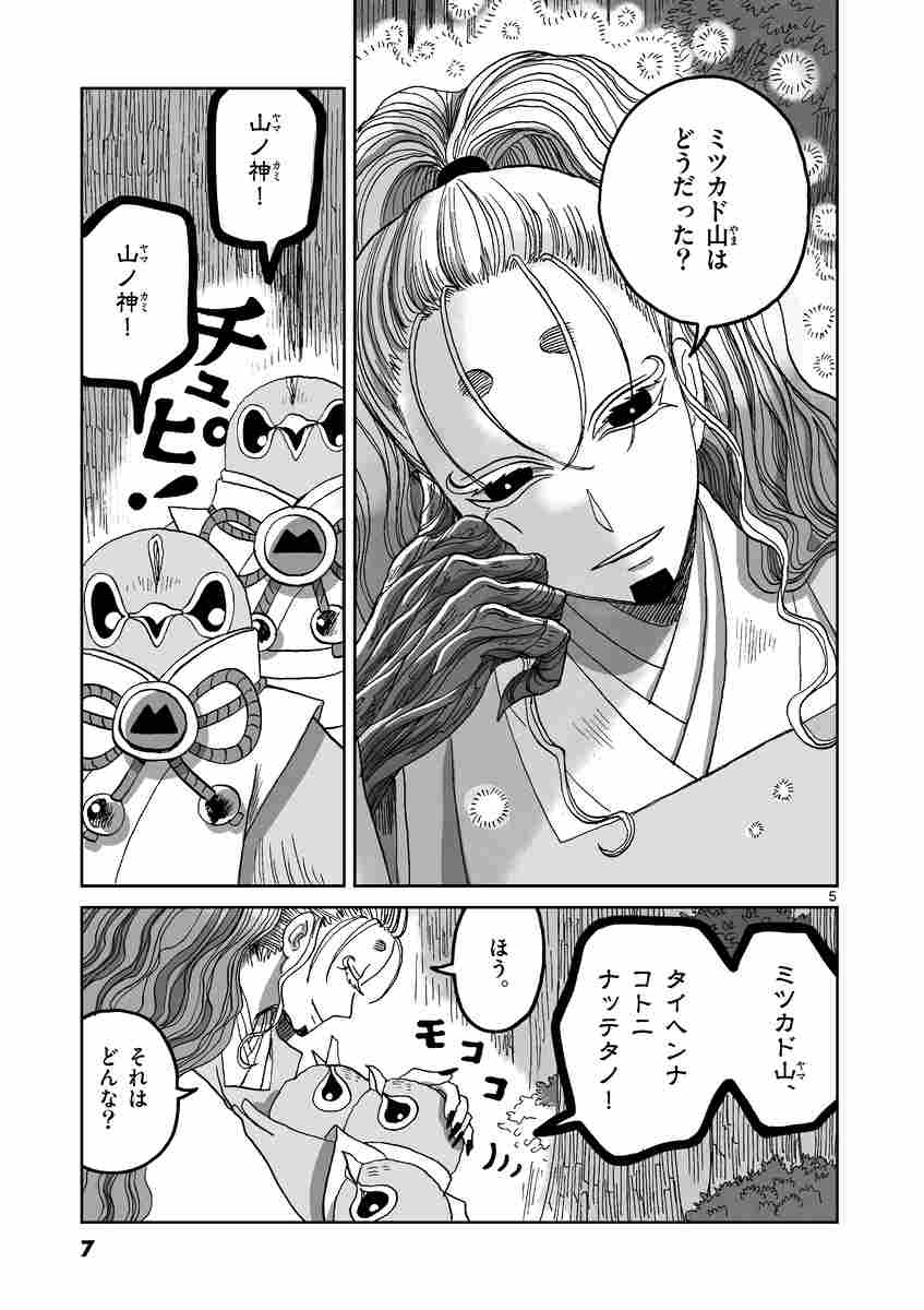 再び関係を築こうとするフタツカドの山の神は、使いを出してミツカド山の様子を窺う。