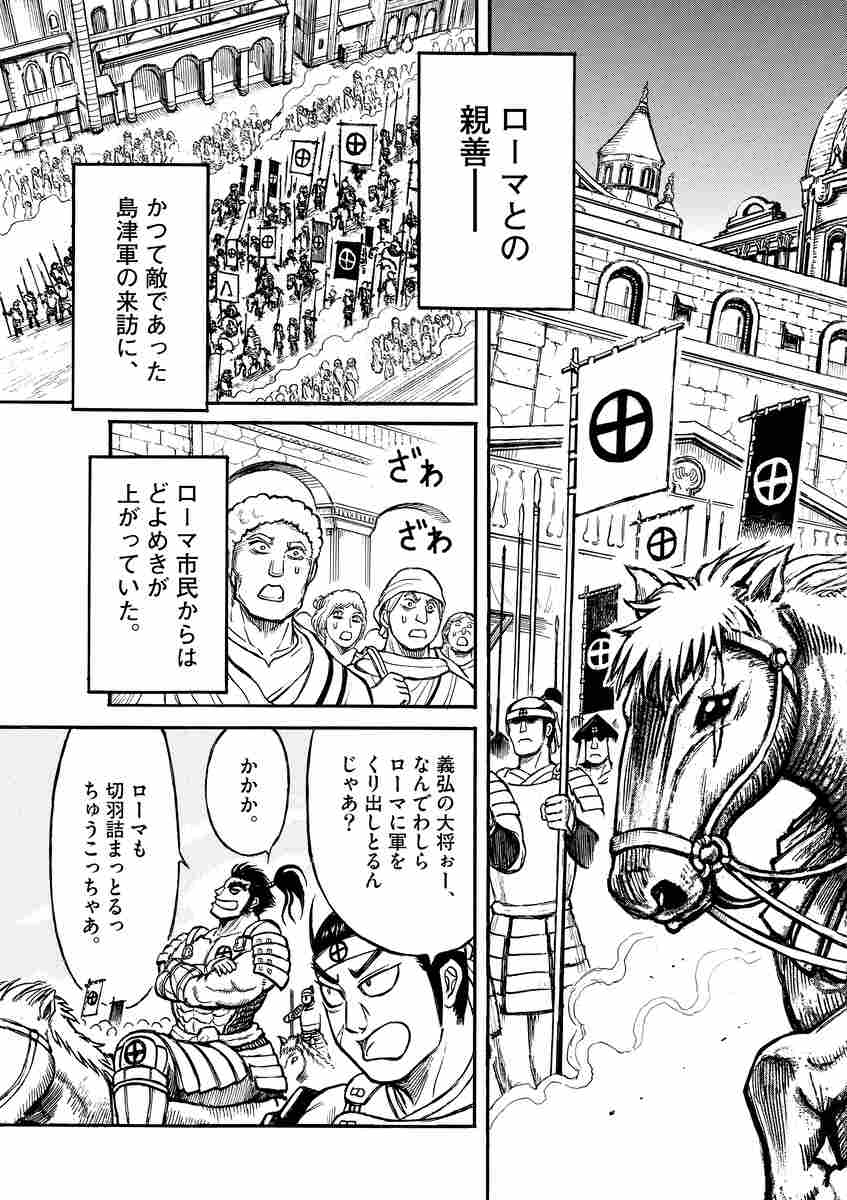 古代ローマで天下統一を目指す島津家は、新たな転生者より、雪深き居城への招待状を受け取る。次男・義弘は親善のため、かつての敵地であるローマを訪問する。テルマエで汗を流す義弘の前に現れた謎の男の正体とは…?
