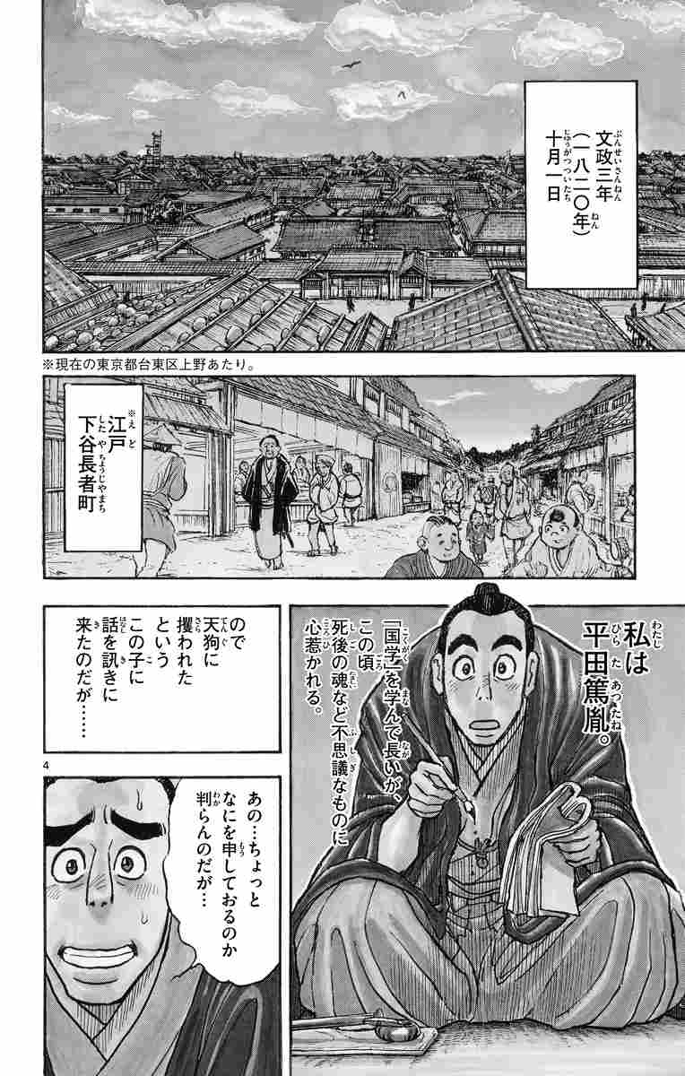 藤田和日郎最新作は、武×魔の異境幻想譚! 天狗に攫われ、仙境に行ったという童子。