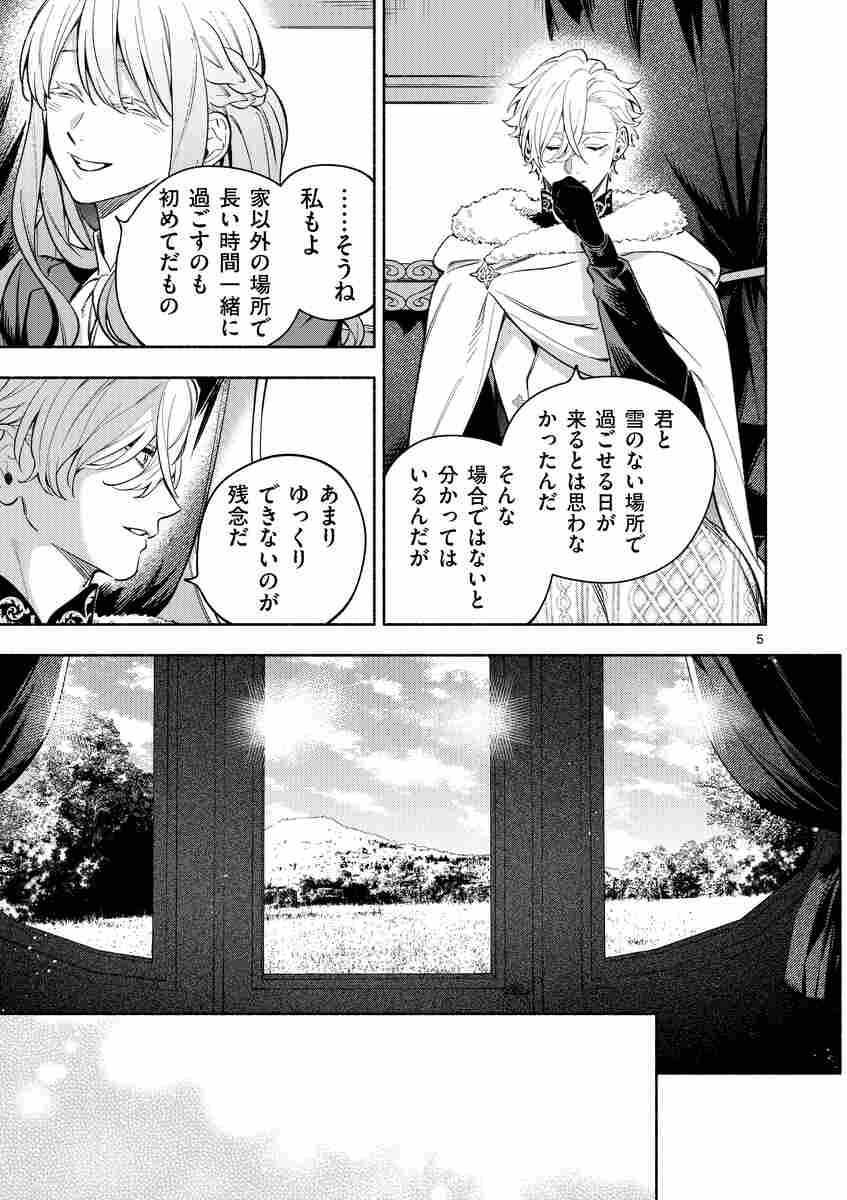 精霊王・フリューリンとの邂逅により、自身にその加護があったことを知ったヴェラは、真実を打ち明け、今後の方針を決めるため、アランと共に皇太子・カロルとの会談に臨む。
