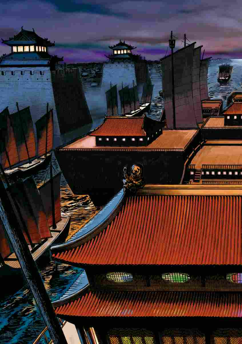 航海開始。最初の寄港地・占城へ。 国内・明での出航準備を終え、南洋諸国へ向かう艦隊は出航間近。