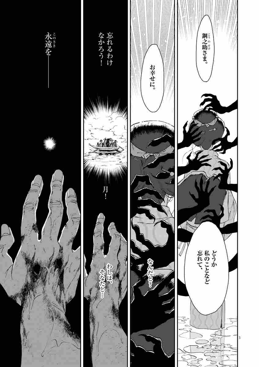 そんな鋼之助のもとに嫁いできた美しき女、月。徐々に愛し合う二人であったが、ある日不思議な力を持つ男が現れ……
