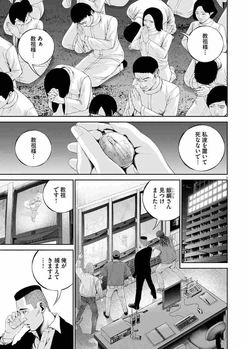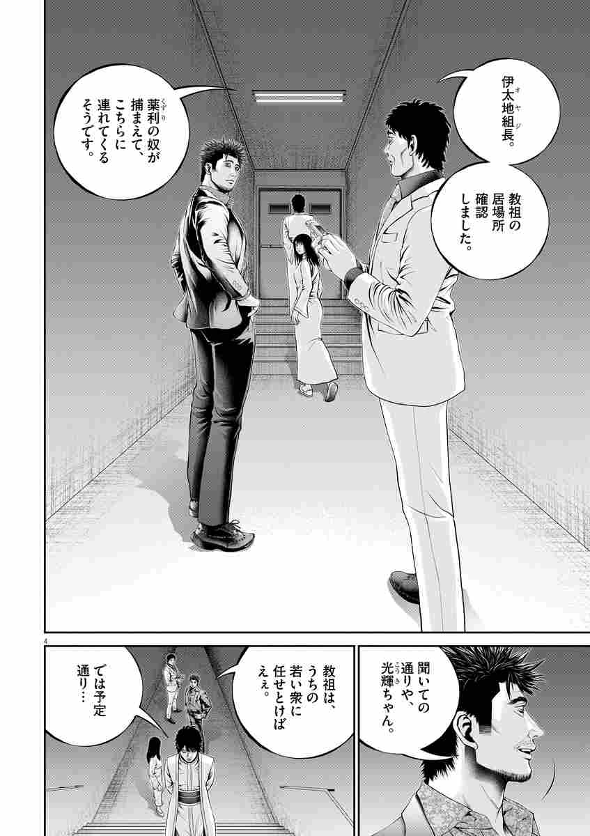 しかし、出会った肉蝮と絵奈に捕まってしまう。伊太地と光輝から教団を奪還できると踏んだ天木は、肉蝮たちと共に、伊太地と光輝がいるビル屋上に向かうが…!?