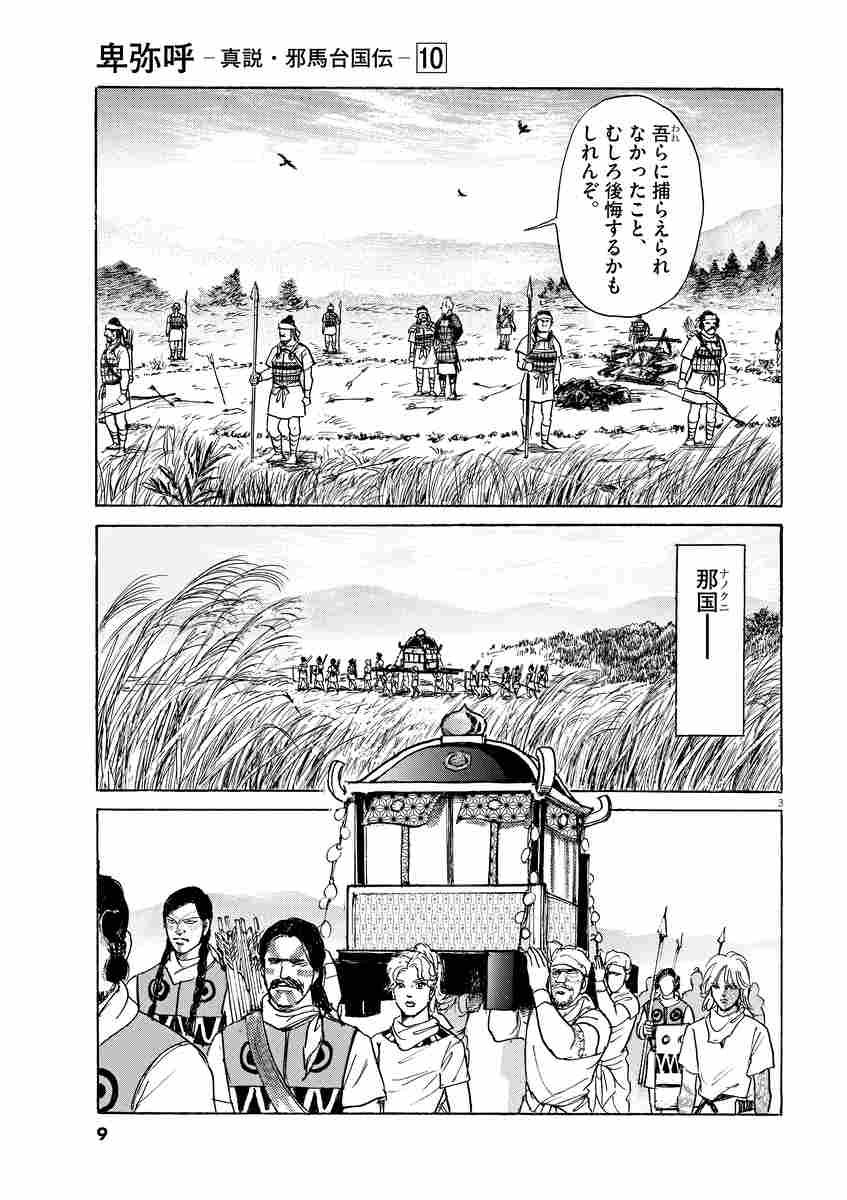 その頃、筑紫島では、伝染病が蔓延する暈国に「田油津日女」と呼ばれる謎の巫女が出現――