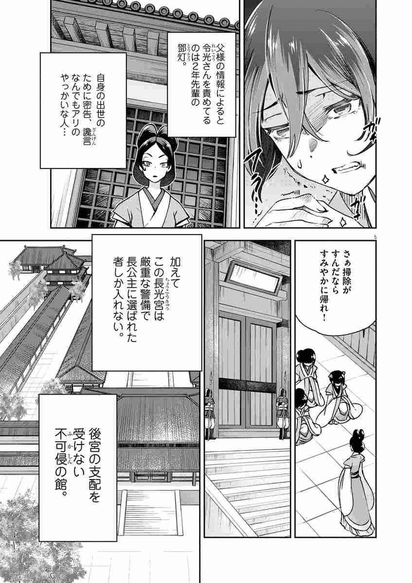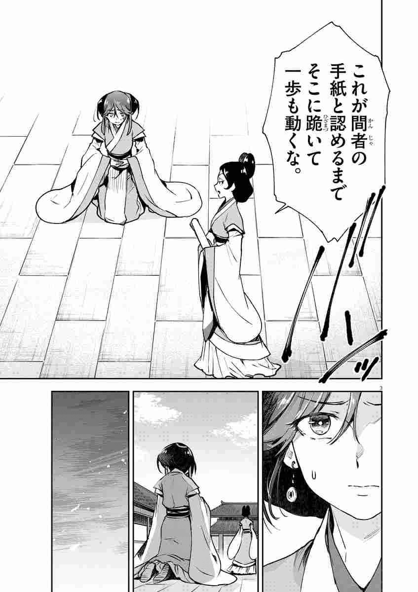 ギザ歯じと目ヒロインが活躍の後宮マンガ! 親切な同僚・令光さんが恋人への手紙をスパイ行為と疑われ