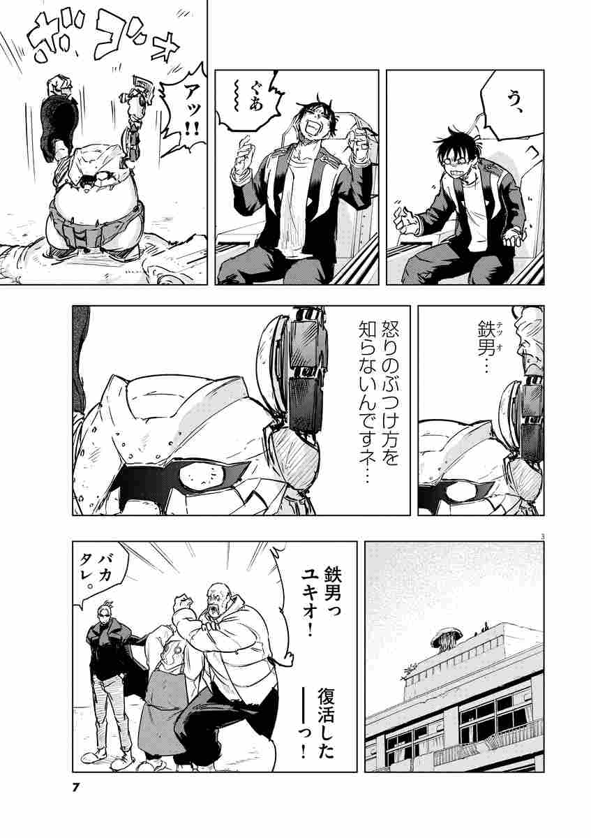 圧倒的危機の中、ユキオの修復を終えた鉄男が到着!