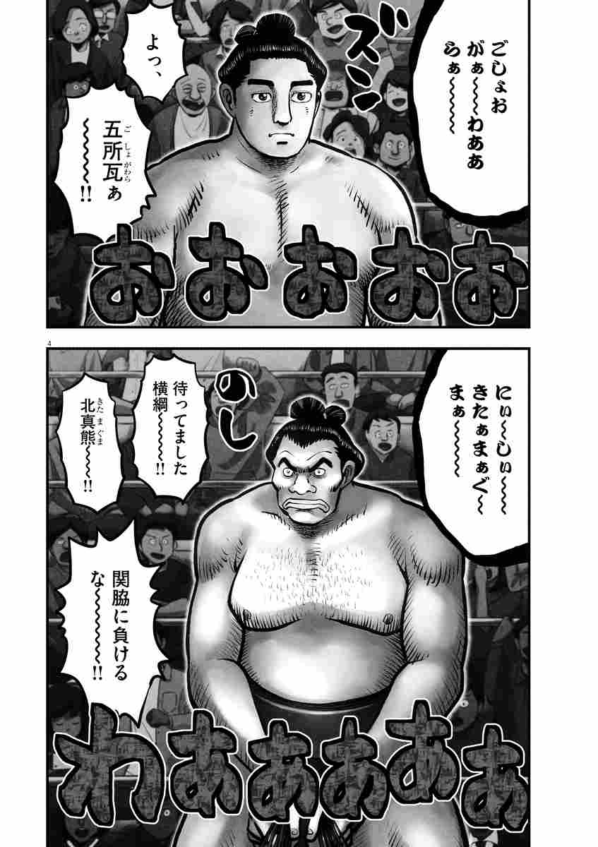 舞台は前作『うっちゃれ五所瓦』の16年後。五所瓦とともに高校相撲のインターハイ団体戦の予選を戦った仲間たち(柔道の清川薫、レスリングの関内孝之、硬派の難野一平、囲碁の雷電五郎)も登場し、30代となっても変わらぬ熱い友情を見せます。高校時代、最強のライバルだった田門泰三もさらに強敵となって登場。さらに個性的な新キャラクターも目白押しです。