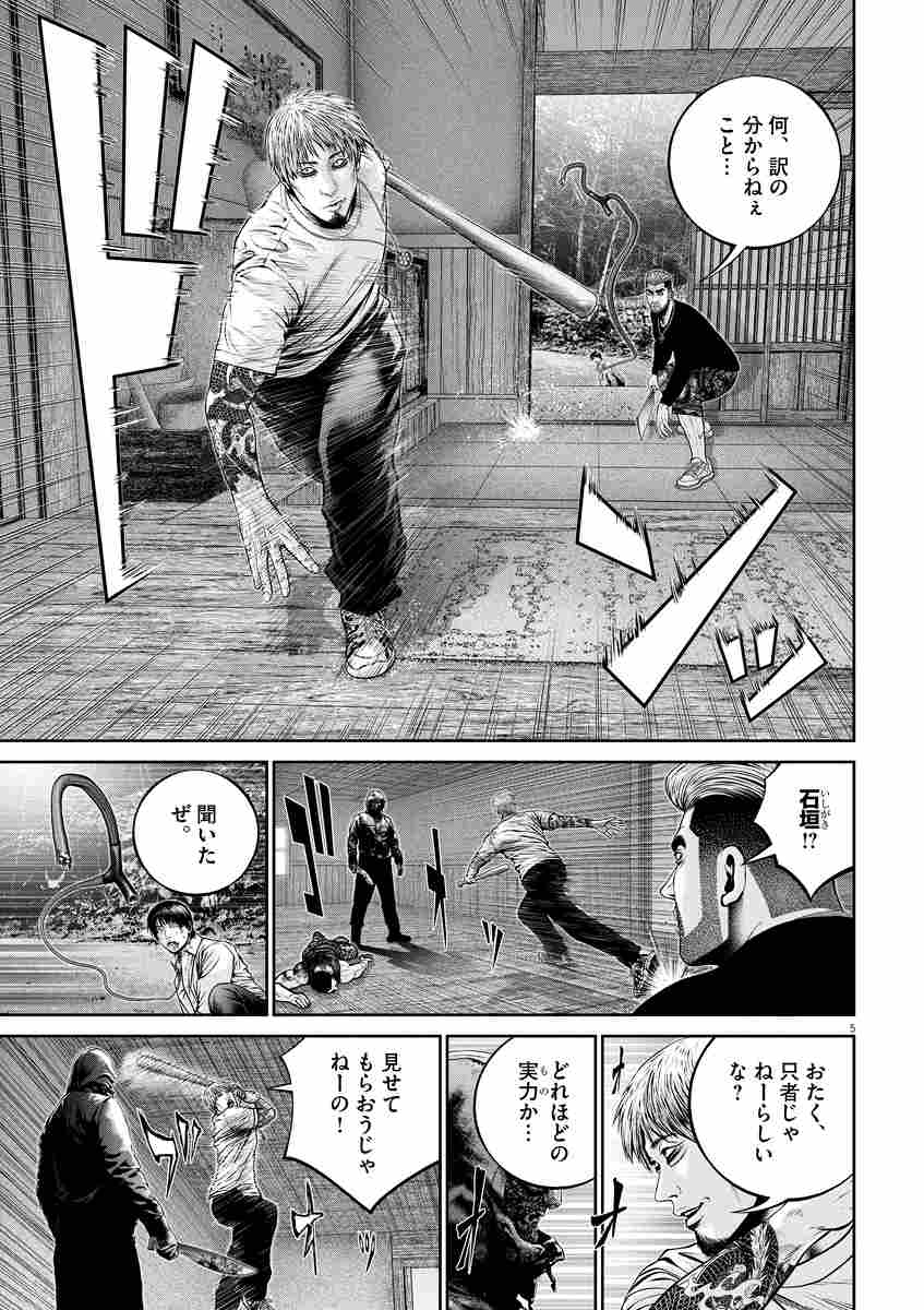 仮面の男の襲撃に半グレのボス二人はかろうじて山中に逃げるが、
