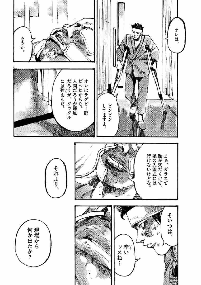 爆発に巻き込まれた大佛と先輩刑事は負傷。