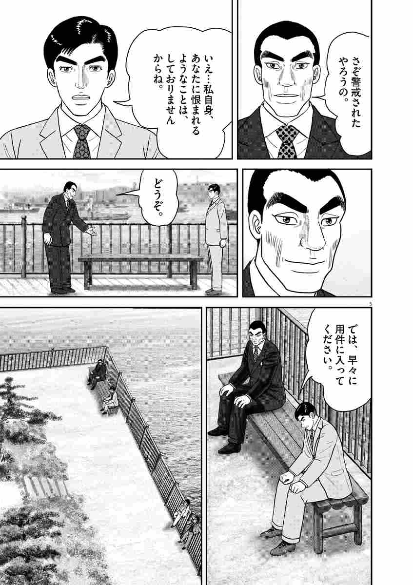 そして、金塊を巡る抗争のキーパーソンとして山岡と菅原にその身を捜されることとなった伴 純吉。財前の依頼で薬を作っている彼は、一体いかなる人物なのか。山岡は伴を捕らえることができるのか…戦争の影がまだ色濃く残る時代に、金塊を巡る抗争が激しさを増す、単行本第5集!!