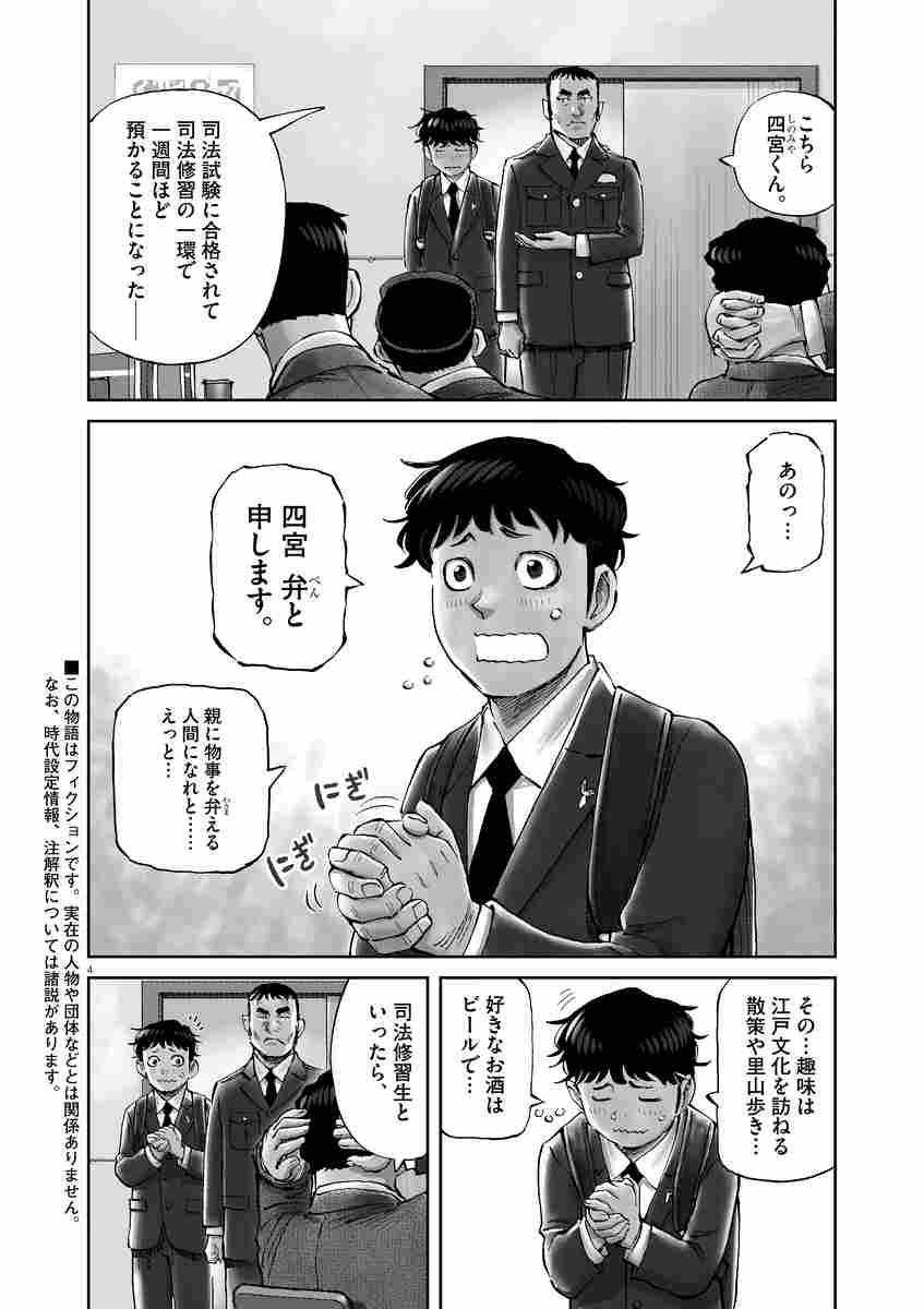 司法修習生である弁護士の卵・四宮弁は、修習の一環として警察署での実務を経験することになる。
