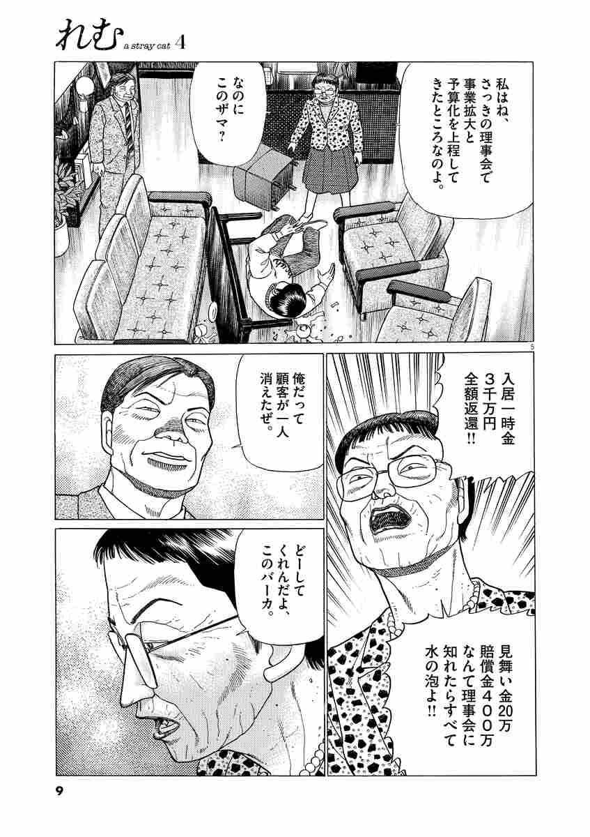 父親の財産を狙う姉たちは後見人である弁護士吉村と結託し、父・耕三をヴィラサントスという老人ホームに拉致します。その老人ホームはかなり悪辣な経営をしています。仲間と力を合わせ、養父・耕三を悪徳ホームから脱出させたれむ。4集では彼女は介護業界の裏側に潜む巨悪を探りを入れ、追い込まれます…!?手に汗を握る急展開をぜひお楽しみください。