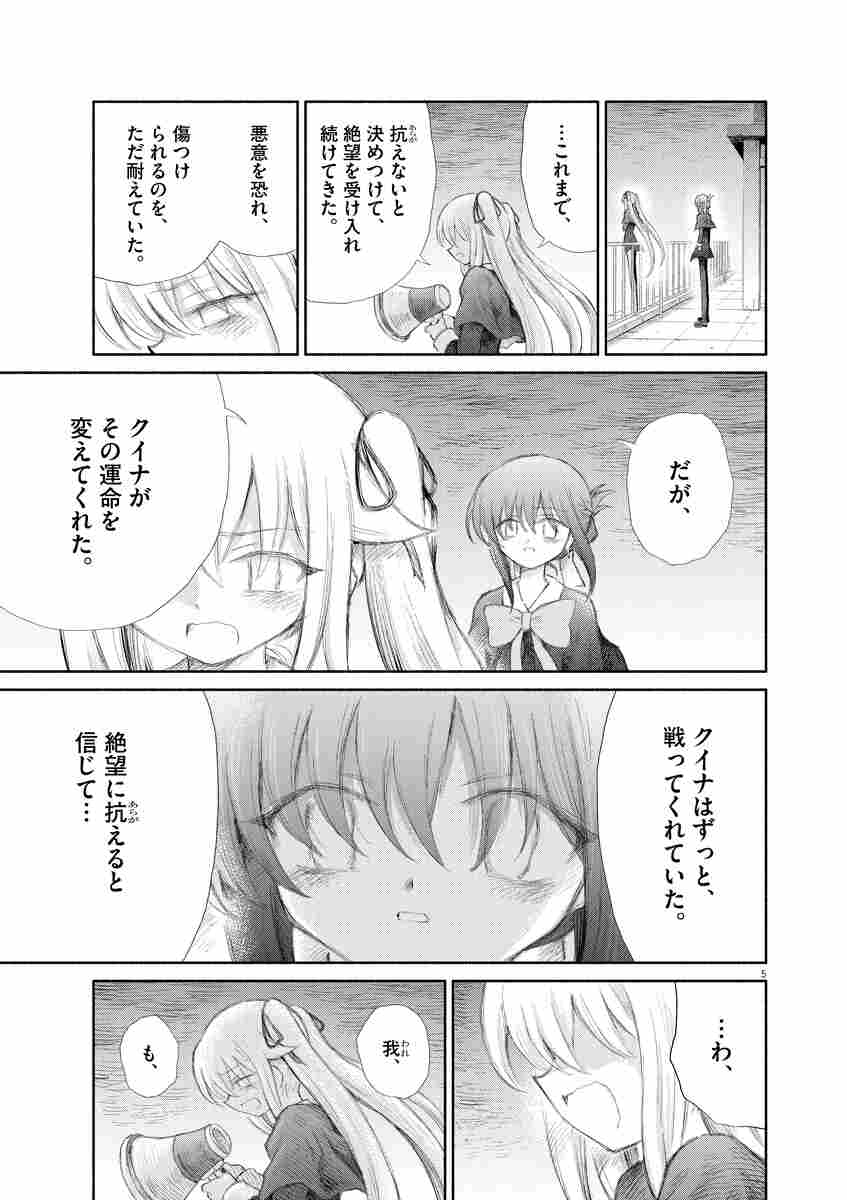 主人公・桃園クイナ、中学二年生。唯一の親友・十八之モアに導かれ、現実世界を救う使徒として、ガフの惑星で「悪性宇宙人」と闘う力を授けられる。クイナに付き纏う眼帯少女・五月アリサと、難病で不登校な包帯少女・久遠リゼの新たな使徒2名と共闘し、モアを蝕む「校舎型の悪性宇宙人を倒すことに成功する。そして、ぬいぐるみを抱えた転校生・卯依むつきが現れ・・・