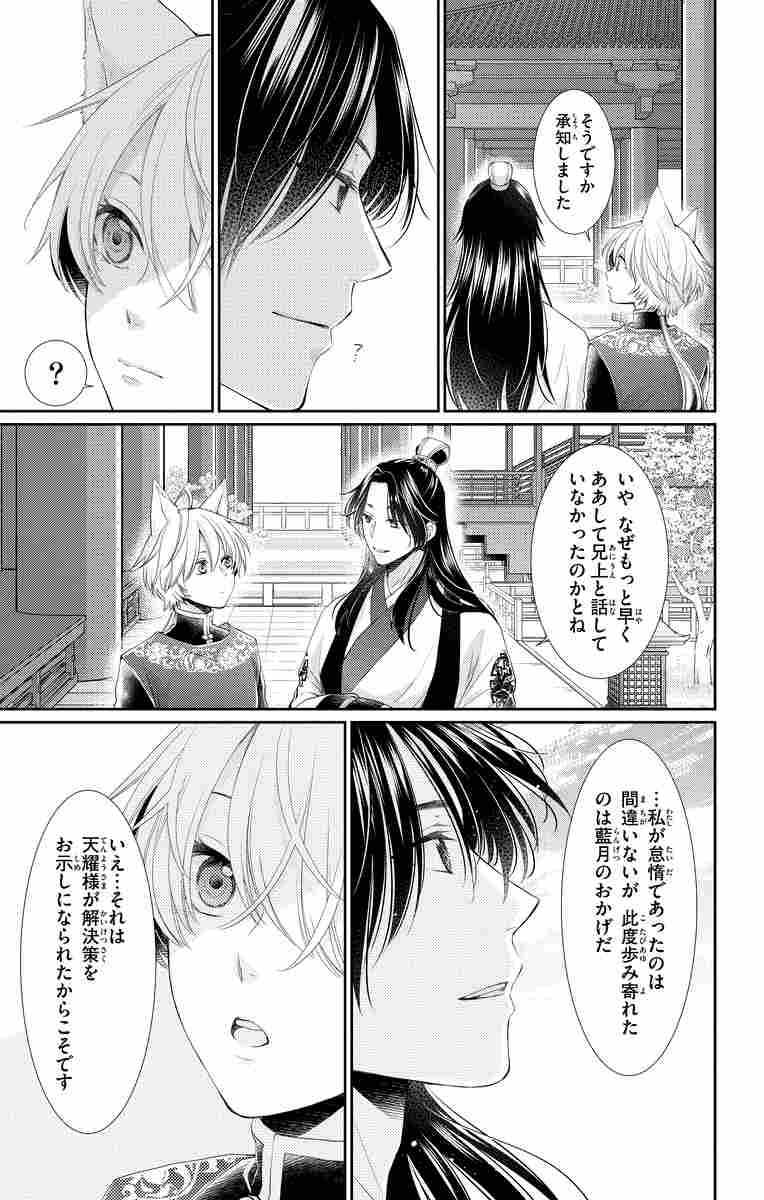 強張る藍月を、天耀は初めて叱り、管轄地の端へ連れ出す。