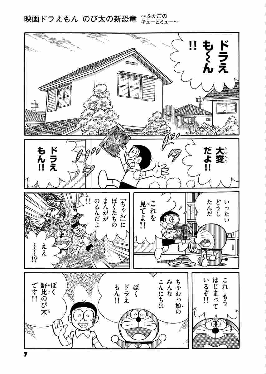 ふたごの恐竜・キューとミューを育てることになったのび太と、ドラえもん、恐竜たちとのほんわか日常ストーリー。