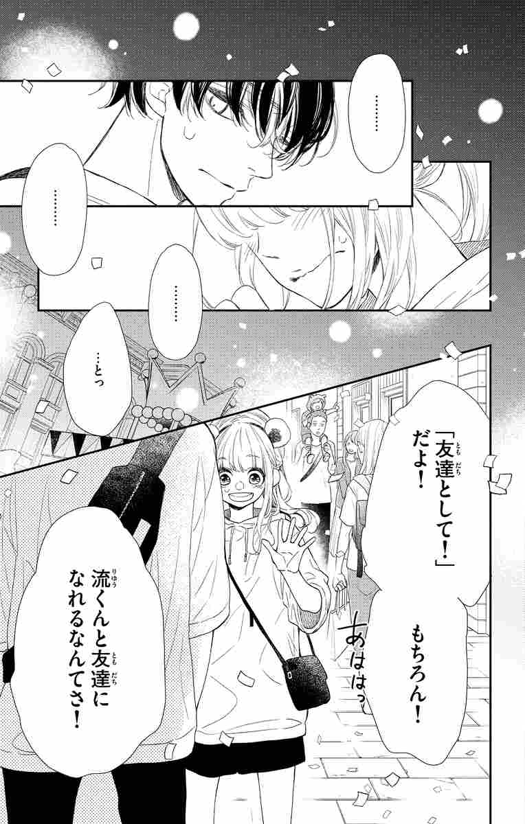 困った顔をした流を見て、慌てて「友達として」と誤魔化したけど、「恋の好きだと伝わったらきっと断られていた」と思い知り、流のことを友達だと割り切ろうと、流にも「友達らしい距離を保ってほしい」と伝える。
