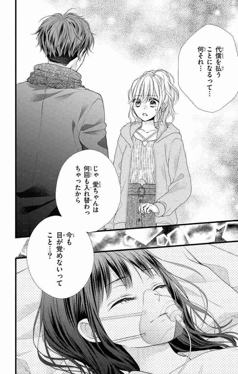 目が離せない入れ替わりラブ、完結! ついに元の姿に戻った恋と愛。だけど愛が眠り続けたまま目を覚まさない。ブレスレットの秘密を知る黒沢に、「願いをかなえた人間は、その代償を払わなければならない」と聞き・・・!?愛を目覚めさせるため、恋と氷鷹はブレスレットをつくった人物を捜すけど!?先が読めないノンストップ入れ替わりラブ、いよいよ完結!最高のハッピーエンドを見逃さないで!