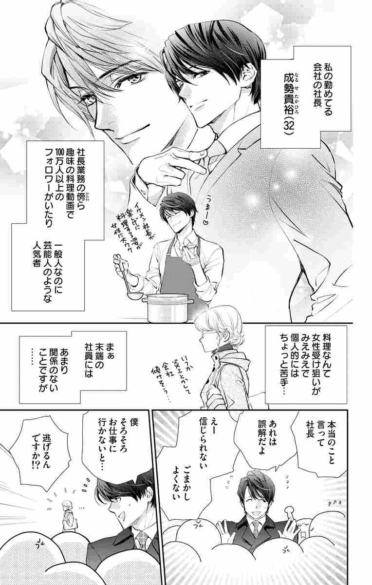 イケメン社長がなぜか私の「通い妻」に!? お堅いOL天由子が勤める会社の社長は、イケメンでフォロワー100万人超のお料理YouTuberで、女優との噂も絶えない有名人。そんな社長になぜか懐かれ、家に帰ると極上の料理を作って待ってる「通い妻」状態に!?