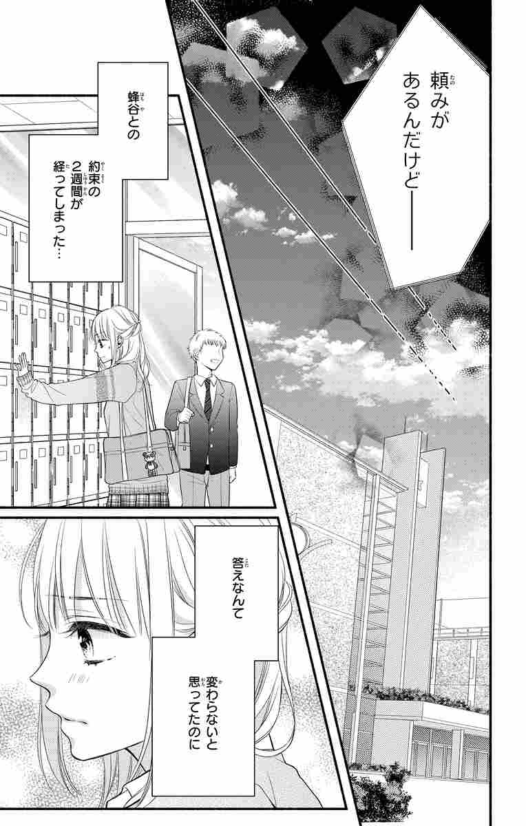 ナマイキ後輩と元カレ、選ぶのはどっち!? 留年し、同じクラスになった部活の後輩・蜂谷から告白された真緒。一度は断ったものの、諦めずに押してくる蜂谷に心が揺れてしまう。蜂谷に惹かれていることを自覚しながらも、なかなか一歩踏み出せずにいる真緒。そんな時、失踪した元カレ・和泉から連絡があったと聞き、一目会いたい真緒は思わず走り出す。だけどその日は蜂谷からデートに誘われた日だった。真緒を和泉に会わせたくない蜂谷は止めに来るけど・・・!?真緒の選択は!?目が離せない青春ラブ、いきなり急展開!!