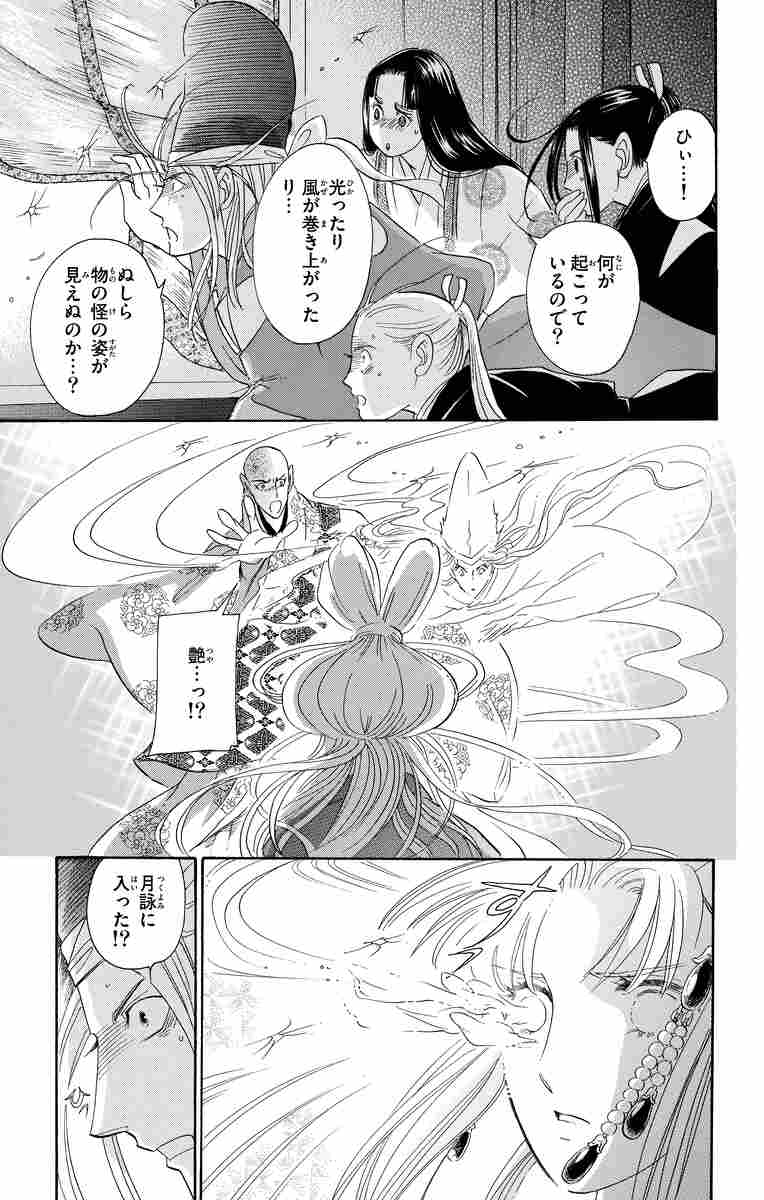 絶世の美女にして悪女!艶様降臨! 時は平安。治天の君と月詠が契りを結ぶ夜に、月詠の身体を借りて現れた母天女・艶。彼女こそ治天の君が焦がれ、再会を待ち続けた古の天女だった。艶が明かした、月詠の本当の父親とは…。そして、月詠のために天女の秘密を探る竹速がたどり着いた「血の十五夜」事件の真実とは…?