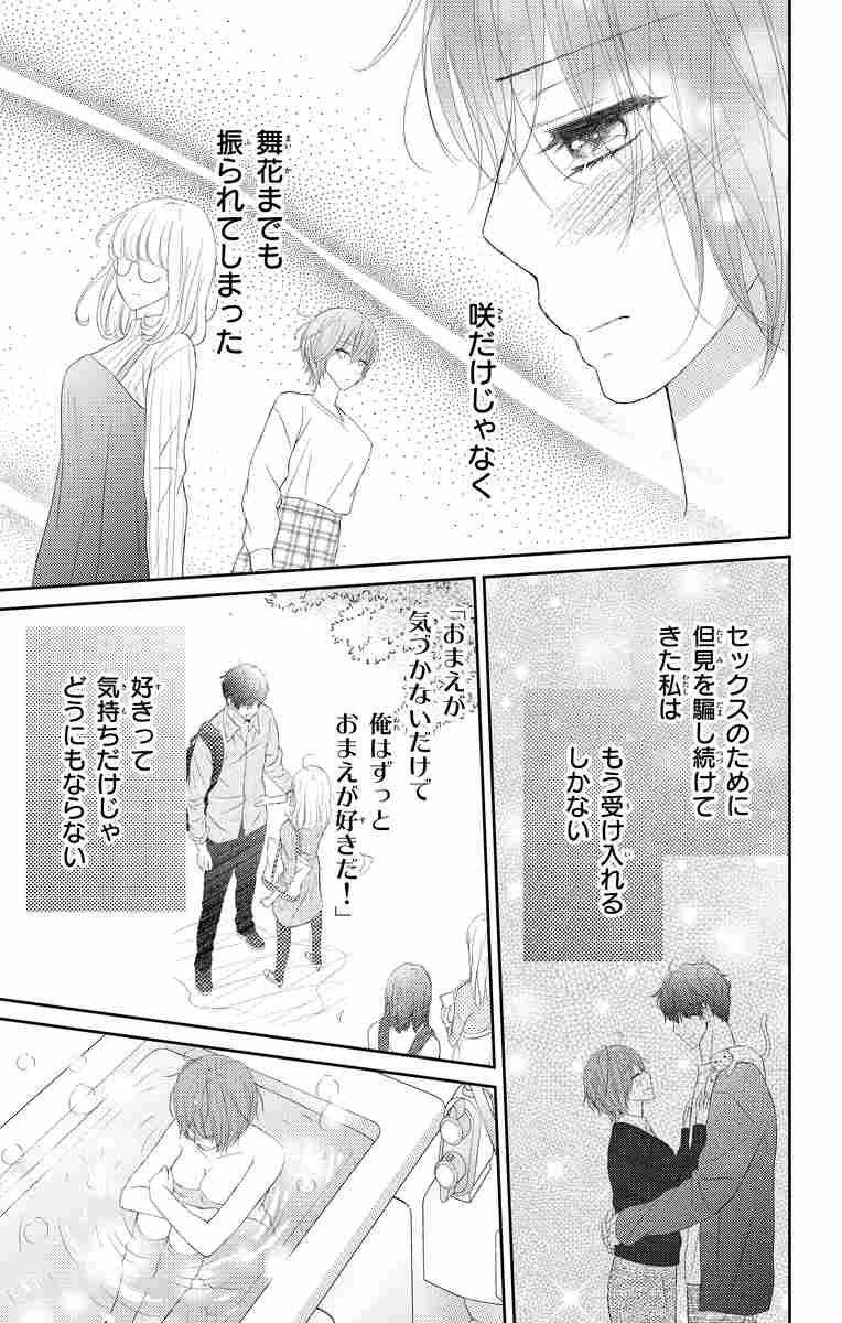 舞花の従妹・咲として、エッチ目的で幼なじみのエリート大学生・但見と交際するうちに、想いを自覚。ところが、咲だけでなく舞花もろとも振られてしまって…!?