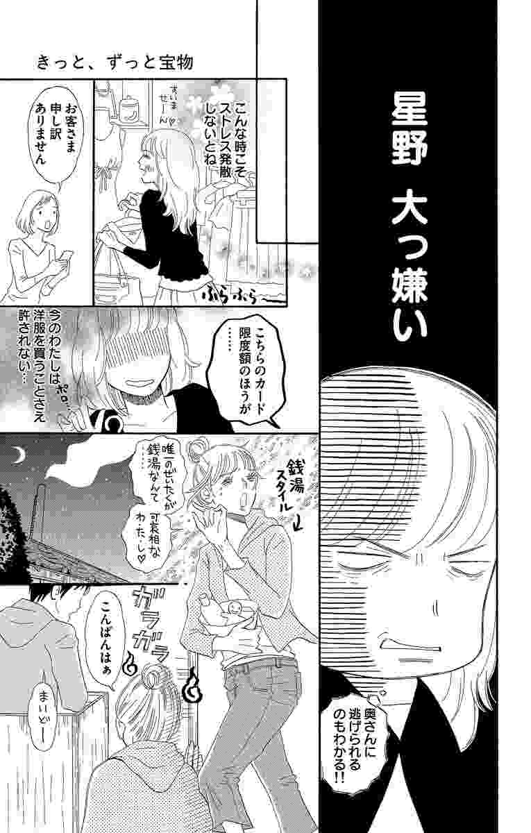 日々の浪費癖がたたり、貯金残高0円という極貧生活に陥った28歳OL・聖子(せいこ)。銭湯通いが始まったが、番台に座っていたのは大っ嫌いな課長・星野(ほしの)だった! 裸もスッピンも貧乏もバレてしまった聖子だが、代わりに課長と小さな女の子のワケアリな関係を知ることになり…? 表題作ほか、カップラーメンをこよなく愛する二人の恋を描いた『キラキラ想い』、『教室で恋をする』、『めぐる春のハル』、『あの人のマリー』など、4編を収録。かわいくてどこか切ない、こゆりワールドがぎゅっと詰まった一冊!