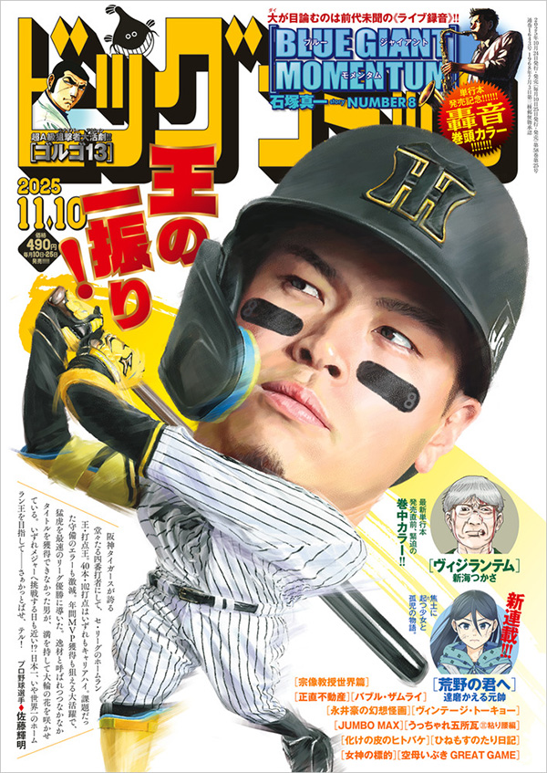 さらに単行本第4集が発売直前の『ヴィジランテム』(新海つかさ)が巻中カラー、2026年映画公開決定でますます絶好調の『正直不動産』(大谷アキラ/夏原武/水野光博)など誌面充実の「ビッグコミック」21号、阪神タイガース・佐藤輝明選手の表紙で発売中!!
