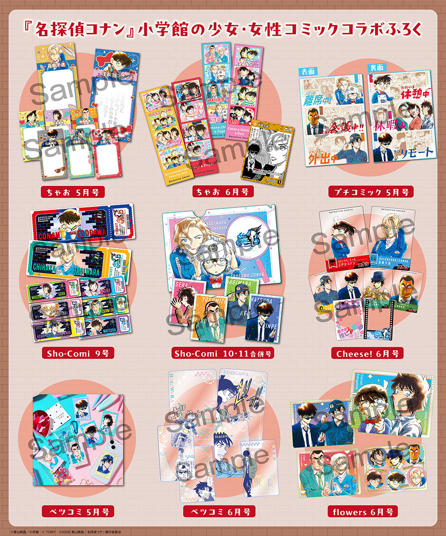 劇場版『名探偵コナン ハイウェイの堕天使』が、いよいよ4月10日(金)に公開! これを記念して、小学館の少女・女性コミック6誌にて『名探偵コナン』(青山剛昌)のスペシャルコラボ付録が登場! 原作イラストを使用した豪華アイテムが以下の全6誌、計9冊に付いてくる!!